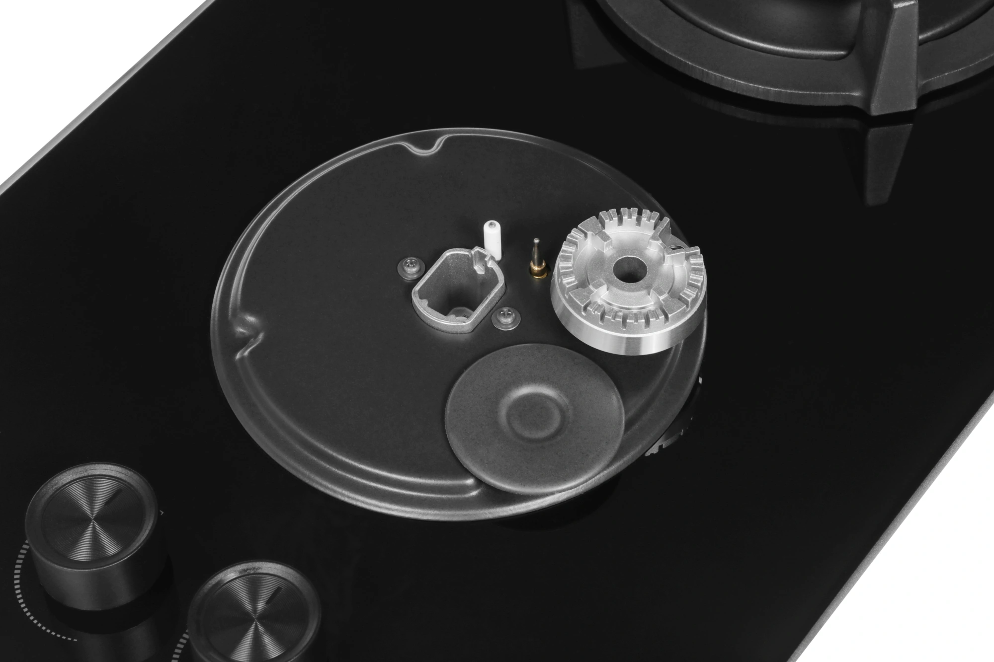 Для безопасности каждая конфорка оснащена газ-контролем с термопарой. Система перекрывает подачу газа при затухании пламени и защищает от утечек даже при сквозняках или попадании жидкости. В комплект входят жиклеры для баллонного газа, что делает панель универсальной для квартиры и дачи.