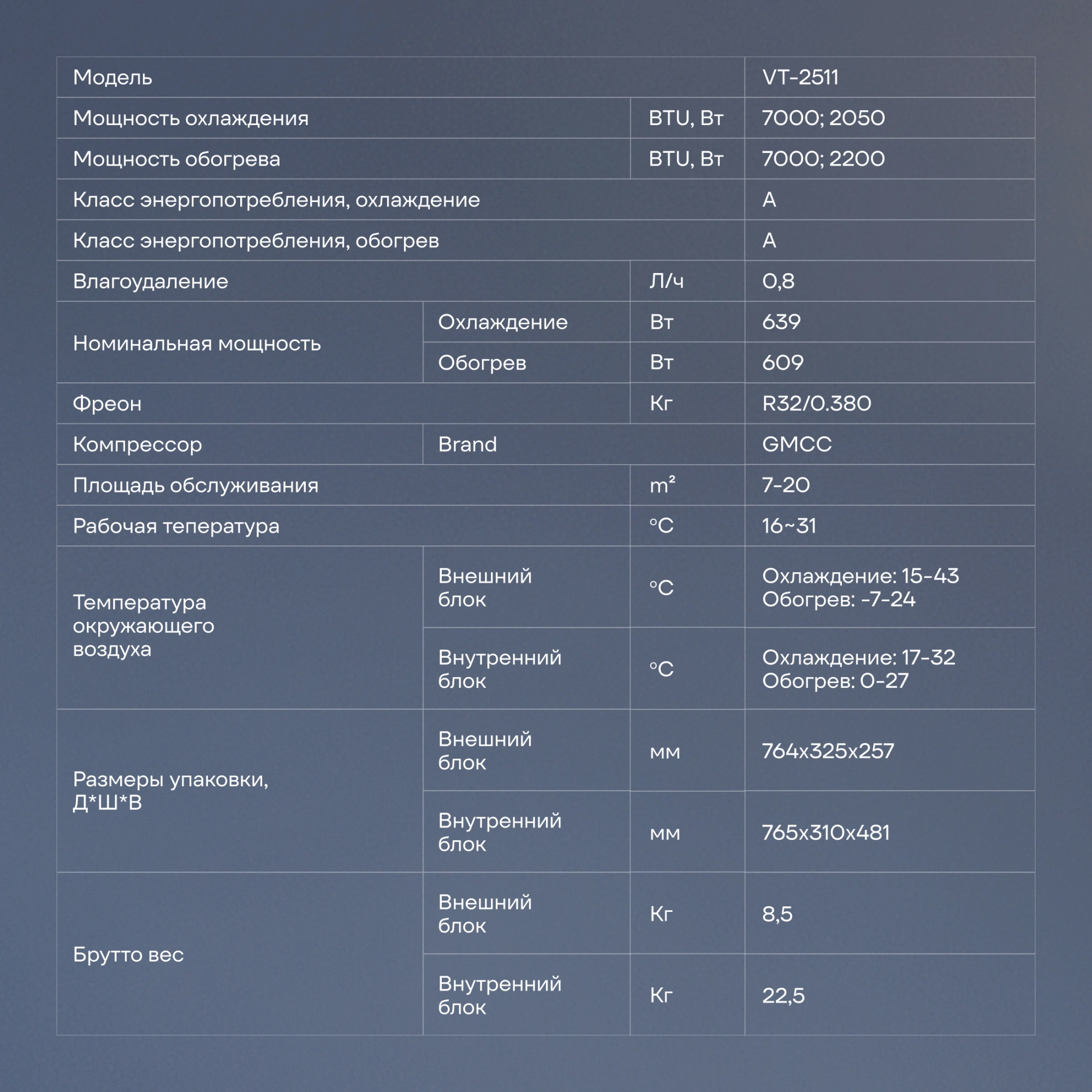 Вес внутреннего блока