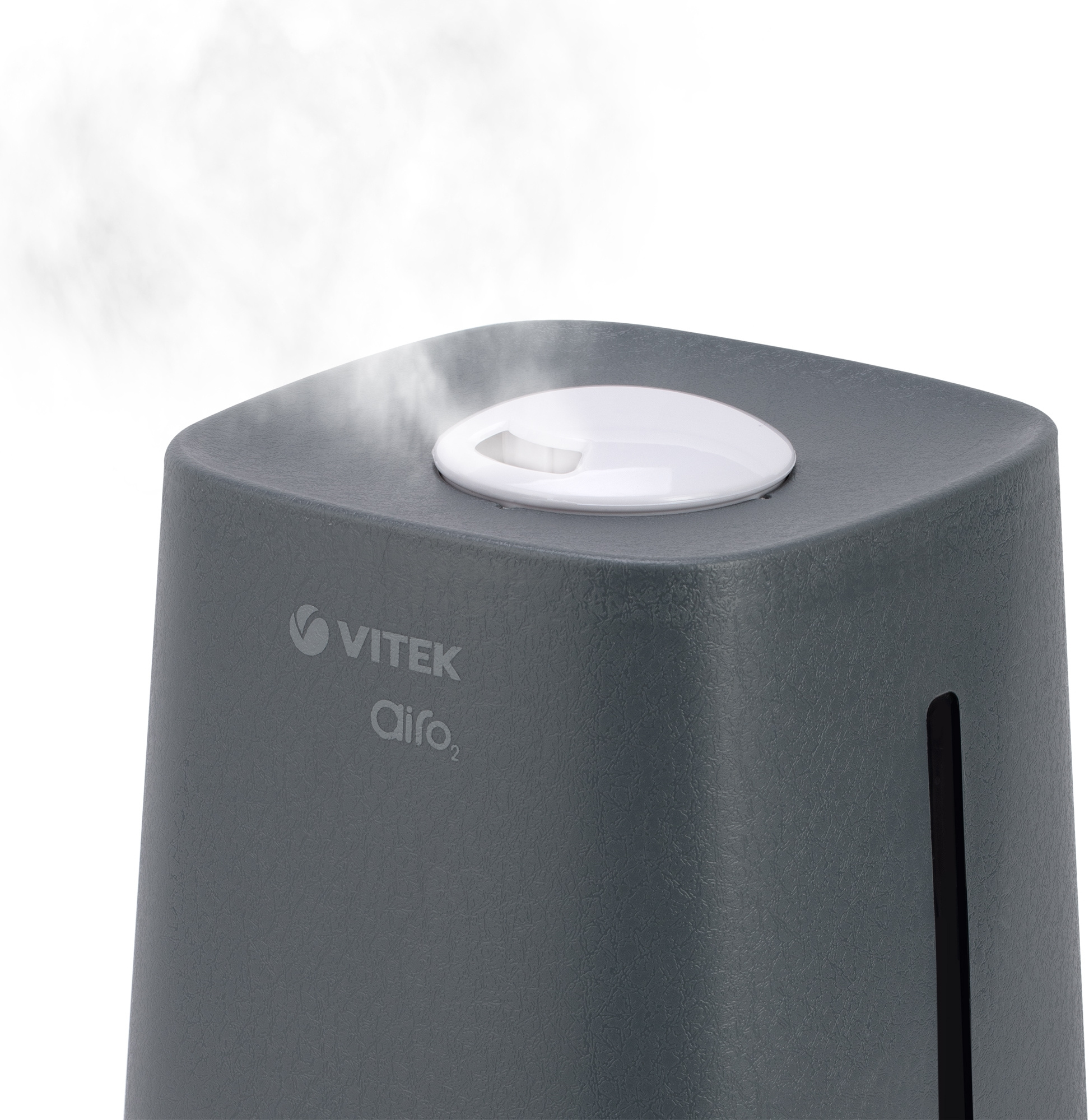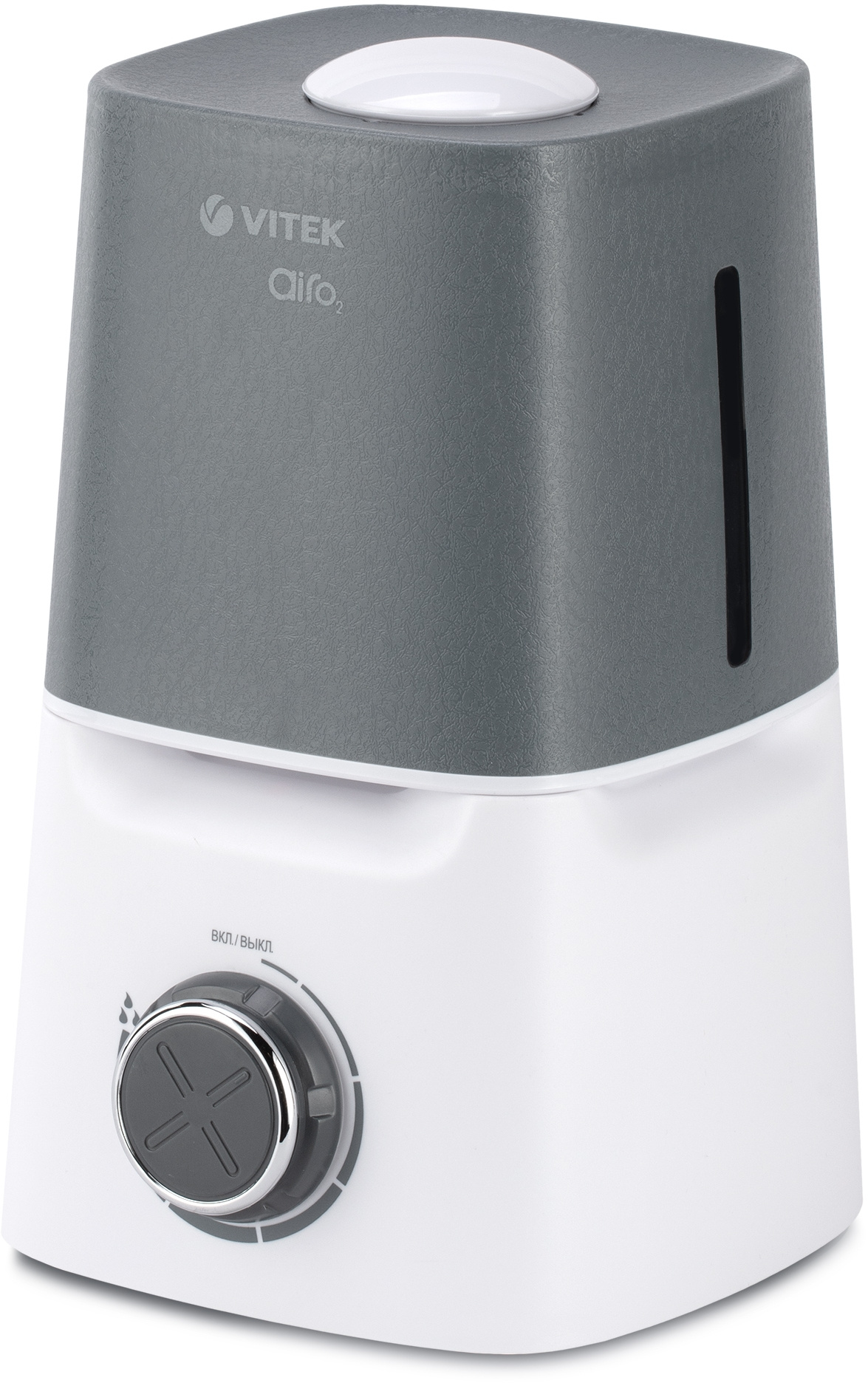 Увлажнитель воздуха VITEK VT-2334 имеет резервуар для воды объемом 2,8 л и рассчитан для работы в течение 8 часов в помещении до 25 м2. Прибор прост в эксплуатации: нужный режим настраивается с помощью поворотного переключателя.