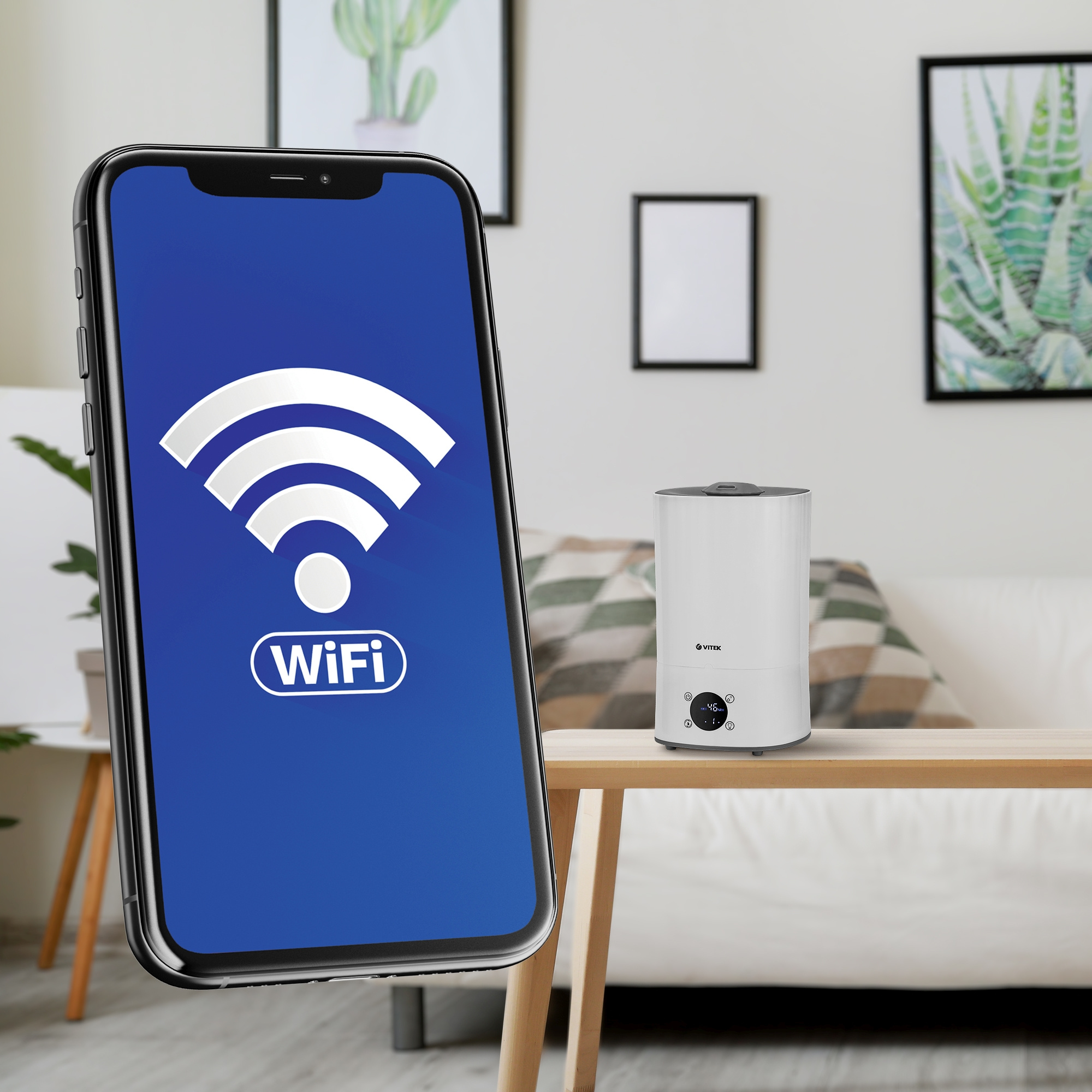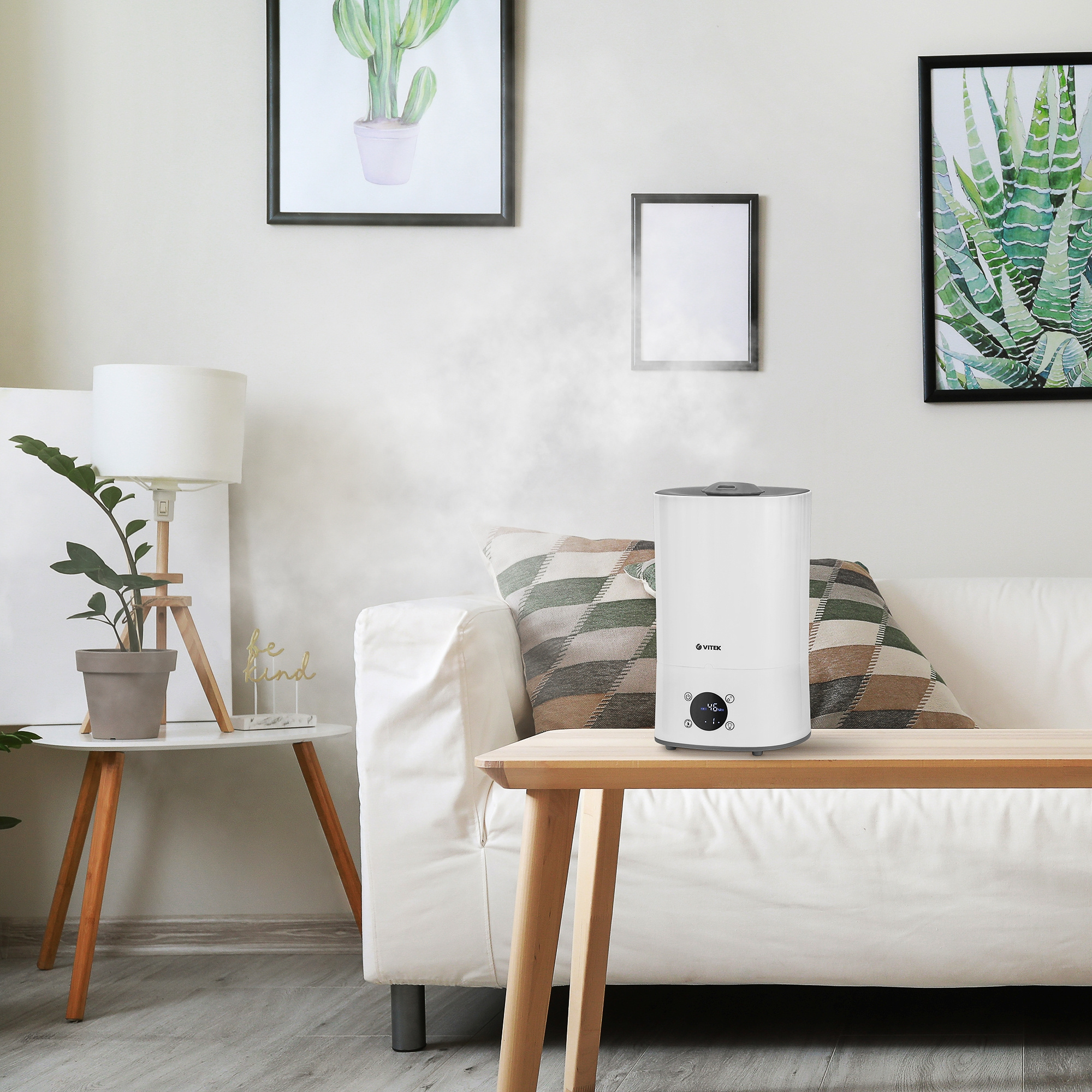 Защитить воздух в помещении площадью до 25 м2 от пересушивания под воздействием кондиционера или радиаторов отопления способен ультразвуковой увлажнитель VITEK VT-2350 с номинальной потребляемой мощностью 28 Вт. Управлять им можно со смартфона, через Wi-Fi, с помощью приложения Tuva Smart или настроить работу прибора вручную на сенсорном LED дисплее. Для особого удобства в использовании увлажнитель оснащен большим резервуаром для воды емкостью 3,5 л (ее расход составляет 250 мл/ч). Вы можете выбрать интенсивность подачи, а также воспользоваться функцией ароматизации воздуха — для создания в помещении особенно приятной атмосферы. Увлажнитель надежен и долговечен в работе, в том числе благодаря наличию керамического фильтра для смягчения воды, который предотвращает образование накипи. Встроенный в прибор гигростат автоматически контролирует уровень влажности в помещении (45-90%), поэтому вы можете установить таймер (до 8 часов) и наслаждаться свежим здоровым воздухом в течение дня или ночи. Купите ультразвуковой увлажнитель VITEK VT-2350, который создаст в доме идеальную «погоду» в любое время года!