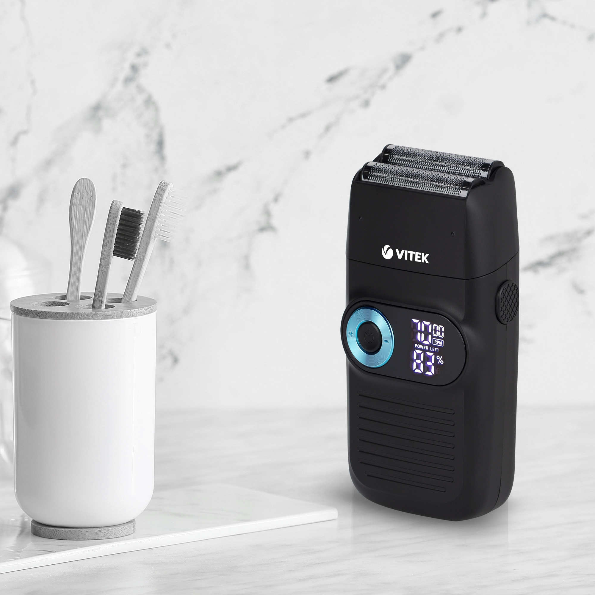 Всем мужчинам, стремящимся всегда выглядеть идеально, посвящается электрическая бритва VITEK VT-8276, работающая от аккумулятора. Две бритвенные головки идеально справляются со своей задачей! Для особого удобства в использовании прибор оборудован индикаторами, оповещающими о степени зарядки устройства. Вся информация отражается на LED-дисплее. Бритва работает не менее 120 минут от аккумулятора, после чего прибор следует отправить на зарядку (время полной составляет 2 часа). После использования прибор можно почистить щеточкой или смазать рабочую поверхность специальным маслом (оба аксессуара входят в комплект). Купите электрическую бритву VITEK VT-8276, которая делает привычный процесс ухода за внешностью легким и приятным!