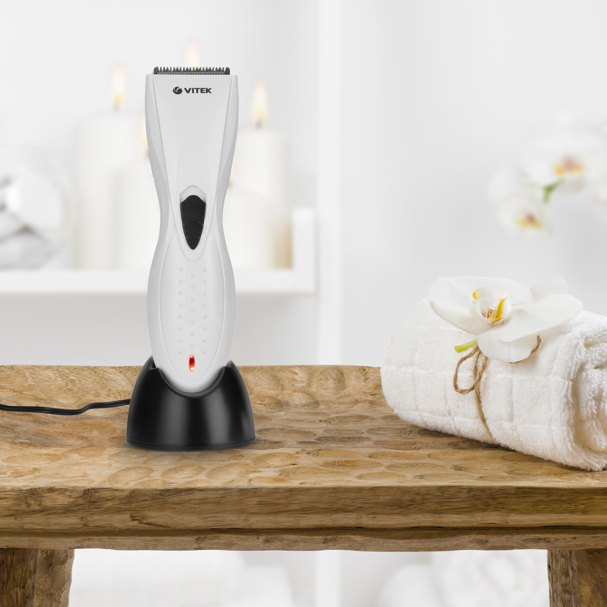 Создать аккуратную короткую прическу поможет машинка для стрижки волос VITEK VT-1351. Машинка работает как от сети, так и от аккумуляторов и имеет компактную подставку (базу) для зарядки с прорезиненными ножками. Специальная телескопическая насадка с лезвиями из высококачественной стали обеспечивает семь различных установок длины от 1 до 13 мм, позволяющих выбрать нужную длину волос. Входящая в комплект щетка поможет избавить лезвие от волос, а удобная расческа станет нужным аксессуаром.