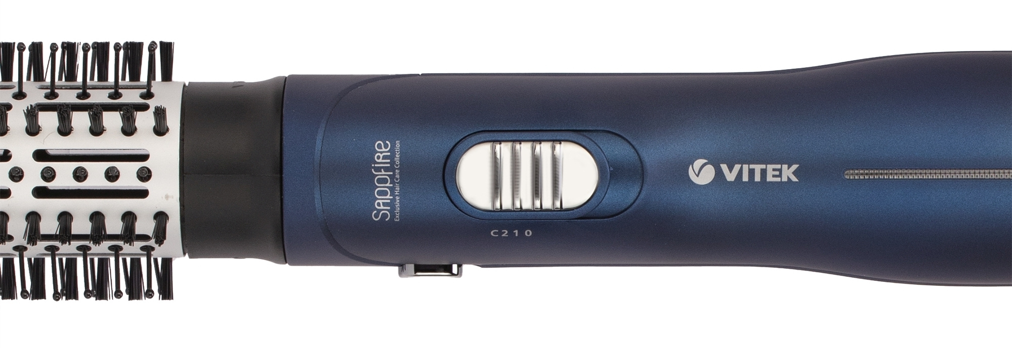 VITEK VT-8237 – достойный представитель эксклюзивной коллекции Sappfire, в которую также входят фен, электрощипцы, набор для стрижки волос и выпрямитель. Фен-щетка – универсальный прибор для укладки мощностью 1200 Вт в красивом корпусе глубокого синего цвета. VITEK VT-8237 имеет три насадки в комплекте: две щетки диаметром 30 и 40 мм и насадку-концентратор. Зубчики одной из щеток легко убираются, что не дает волосам запутаться при укладке. Функция вращения шнура делает использование фена еще более удобным и комфортным.