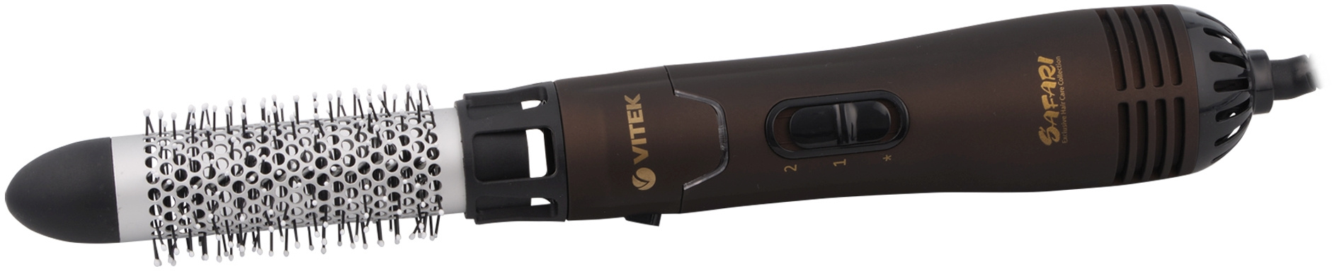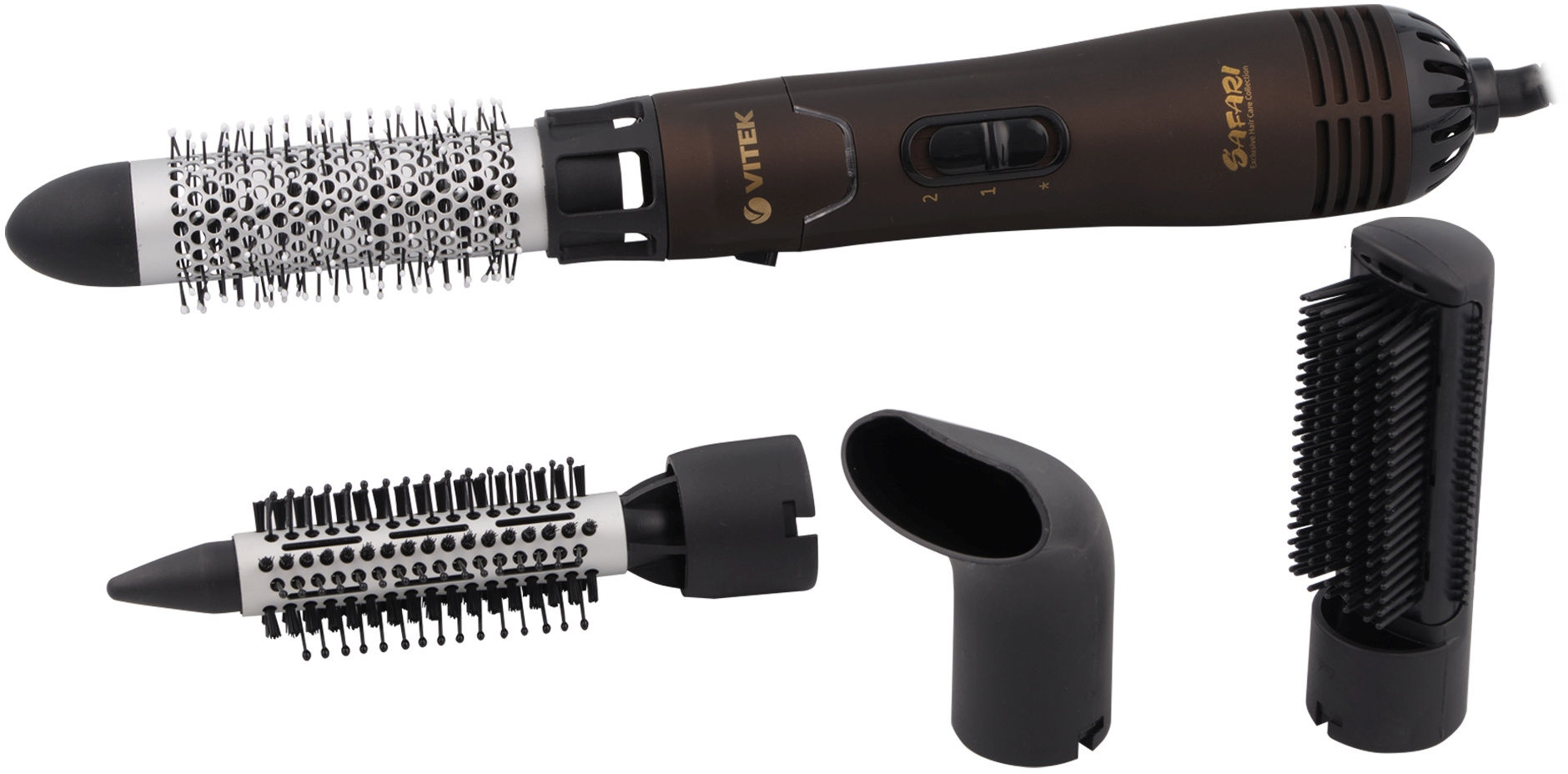 Не только сушить волосы, но и укладывать их в прическу поможет вам фен-щетка VITEK VT-8248. Максимальная мощность устройства — 1000 Вт. Прибор оснащен двумя температурными режимами и двумя скоростями воздушного потока, а также режимом холодного воздуха для закрепления готовой прически. В приборе имеются четыре насадки: две термощетки диаметром 43 мм и 50 мм для создания вьющихся локонов, плоская щетка, которая позволит выпрямить волосы в процессе их сушки, а также концентратор. Последний поможет направлять поток воздуха на определенные участки прически, чтобы она выглядела именно так, как вы задумали. Пользоваться феном-щеткой очень удобно, благодаря вращающемуся шнуру длиной 1,8 м. По окончании работы прибор можно подвесить за удобную петельку. Купите фен VITEK VT-8248: почувствуйте себя настоящим стилистом!
