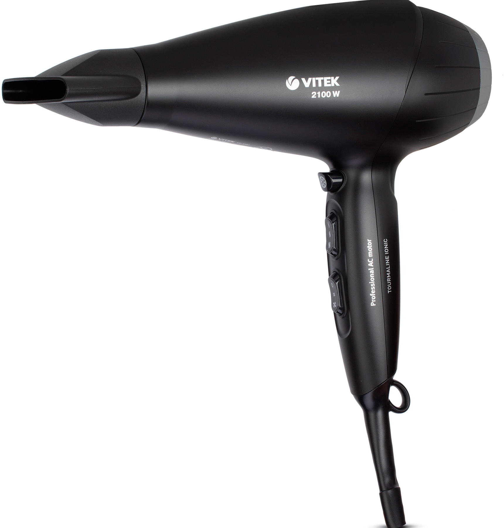 Почувствовать себя настоящим стилистом даст возможность фен VITEK VT-1301 с профессиональным AC мотором, который обеспечивает прибору долгий срок службы. Устройство имеет 3 температурных режима и 2 скорости воздушного потока, а также функцию подачи холодного воздуха — для фиксации укладки. Фен оснащен генератором отрицательных ионов, которые способствуют запечатыванию чешуек волос и снятию статического электричества. Максимальная мощность прибора — 2100 Вт.