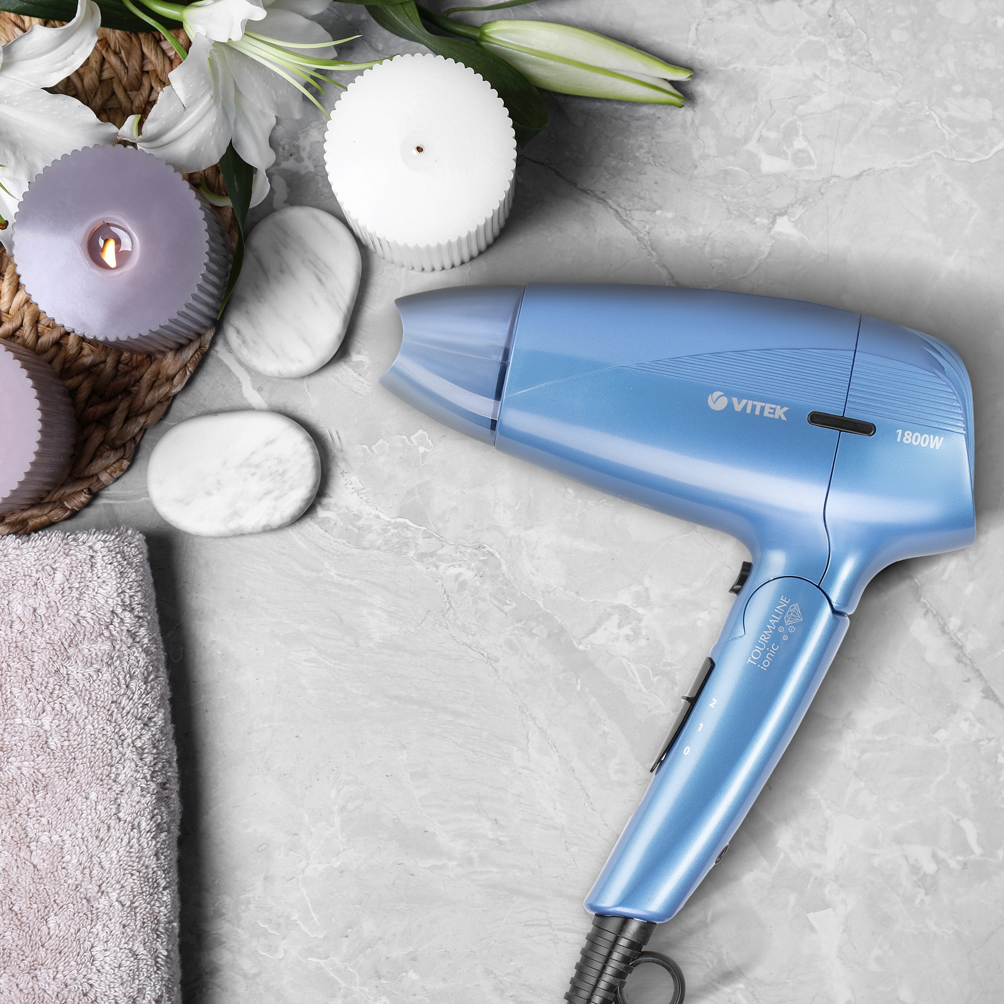 Фен VITEK VT-2316 B маленький, но такой функциональный. Компактный размер и складная ручка позволяют сэкономить пространство. С помощью переключателя вы с легкостью настроите подходящую температуру и интенсивность подачи воздуха.