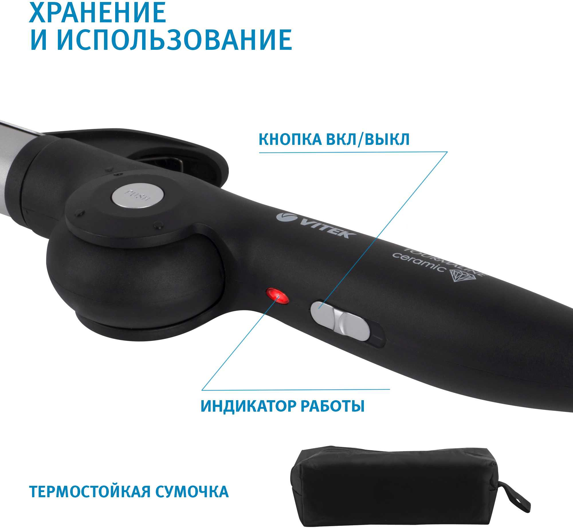 Если вы обожаете путешествовать и желаете всегда выглядеть безупречно, то дорожные электрощипцы VITEK VT-2522 с удобной складной ручкой созданы специально для вас! В комплект входит термостойкая сумочка, в которой и можно перевозить прибор. Поверхность рабочей части щипцов диаметром 25 мм имеет керамическое покрытие Tourmaline Ceramic, которое способствует снятию статического электричества и «запечатыванию» чешуек волос, благодаря чему они выглядят блестящими и здоровыми. Бережному воздействию на них также способствует технология PTC Heating, позволяющая быстро стабилизировать нагрев. Максимальная температура — 180 °С. Отдельно стоит отметить профессиональное использование прибора — под углом 90°. Наконечник электрощипцов выполнен из ненагревающегося материала, что обеспечивает особое удобство в их использовании. Комфорту способствует и вращающийся на 360° шнур длиной 1,8 м, а также специальная петелька для подвешивания. Если оставить прибор без движения, он отключится автоматически. Купите электрощипцы VITEK VT-2522: будьте красивы всегда и везде!