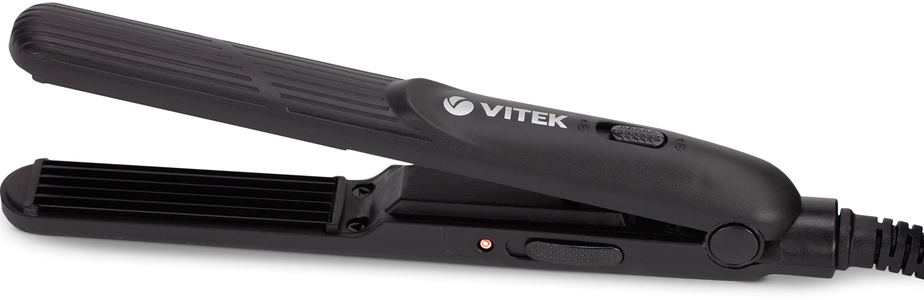 Собираетесь в поездку? Не забудьте взять с собой компактные электрощипцы-гофре VITEK VT-8296, которые помогут вам создавать эффектные прически в любое время и в любом месте. Максимальная температура нагрева — 200 °С. О рабочем режиме прибора вам «сообщит» LED-индикатор, расположенный на боковой поверхности устройства. Пластины электрощипцов имеют керамическое покрытие Tourmaline Ceramic, которое способствует снятию статического электричества, благодаря чему ваши волосы будут выглядеть блестящими и здоровыми.