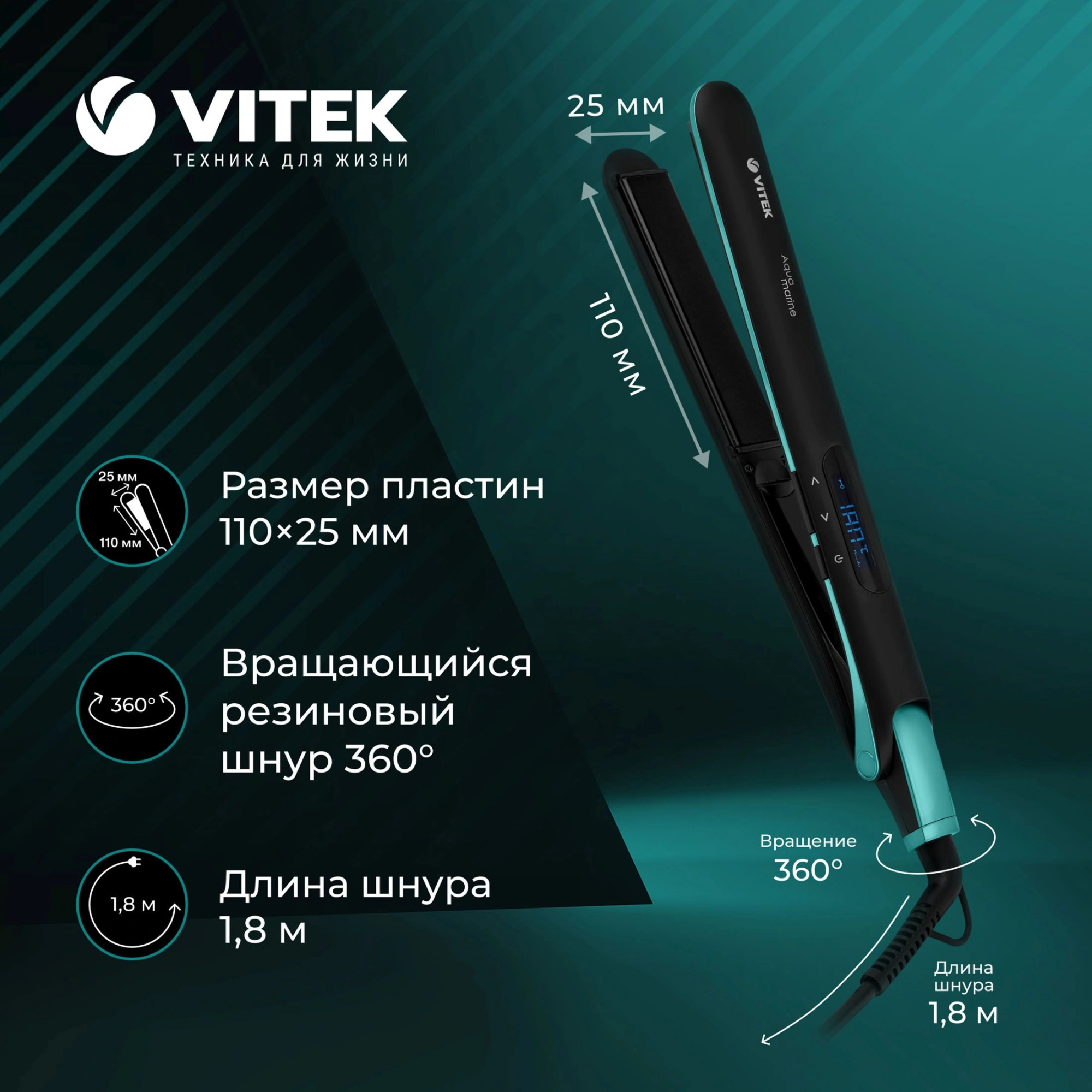 Если вы любите стильные гладкие прически, то без выпрямителя VITEK VT-1335 с максимальной температурой 230°С вам просто не обойтись! Его пластины размером 25 х 110 мм имеют покрытие Tourmaline Ceramic, благодаря которому тепло равномерно распределяется по нагреваемой поверхности, а статическое электричество снимается. Благодаря этому, а также технологии Avocado Oil они становятся мягкими, послушными и блестящими. В результате после процедуры выпрямления волосы не пересушиваются и выглядят более здоровыми. Кроме того, нагрев пластин выпрямителя происходит невероятно быстро, за 30 секунд до оптимальной температуры, что обеспечивает более бережное воздействие на волосы (PTC Heating). Включается и выключается прибор нажатием одной кнопки. По желанию, вы можете выбрать один из одиннадцати режимов, информация о котором будет отображаться на LCD-дисплее. Пользоваться выпрямителем очень удобно, благодаря шнуру длиной 1,8 м, вращающемуся на 360°. После 60 минут работы прибор автоматически отключается во избежание перегрева. Купить выпрямитель для волос VITEK VT-1335 можно и для себя, и в подарок близкому человеку.