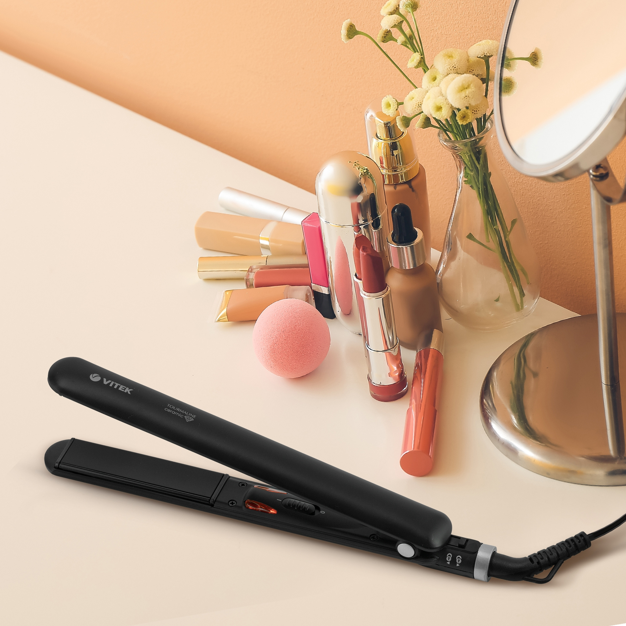 Сделать красивую гладкую прическу поможет вам выпрямитель для волос VITEK VT-8288. Пластины размером 25х90 мм имеют особое покрытие Tourmaline Ceramic, которое способствует снятию статического электричества и «запечатыванию» чешуек волос, поэтому в результате они выглядят блестящими и здоровыми. Технология PTC Heating позволяет быстро стабилизировать нагрев прибора (максимальная температура — 200 °С). Благодаря этому волосы не пересушиваются и сохраняют эластичность. Выпрямитель имеет световой индикатор, который делает использование прибора максимально комфортным.