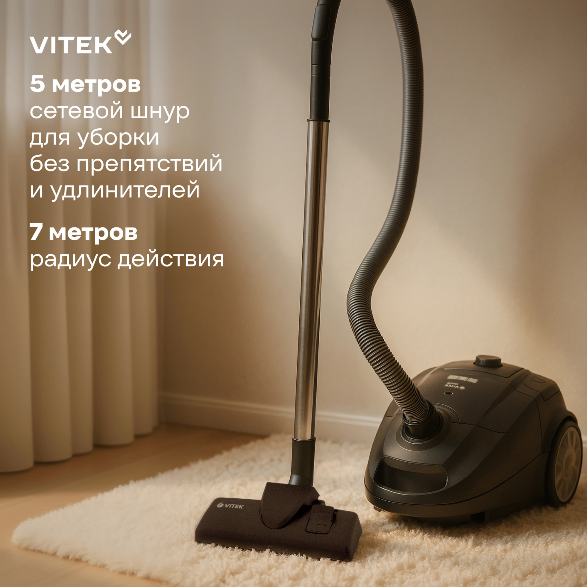 Безупречно и быстро убраться в квартире поможет пылесос VITEK VT-1828 с мешком для сбора пыли, оборудованный универсальной телескопической металлической трубкой. Максимальная мощность прибора — 1600 Вт. Устройство оснащено многоуровневой системой фильтрации, которая эффективно задерживает пыль и выпускает наружу очищенный воздух. Регулировать мощность работы устройства можно с помощью переключателя, расположенного на корпусе (максимальная мощность всасывания — 300 Вт). Пользоваться пылесосом очень удобно: он имеет вместительный пылесборник объемом 3 л и длинный шнур (5 м), который обеспечивает особую маневренность. После окончания работы его можно смотать, нажав на специальную кнопку. В комплект с прибором входит один тканевый мешок для мусора и три бумажных. Купите пылесос VITEK VT-1828, который позволит вам содержать квартиру в порядке без лишних усилий.
