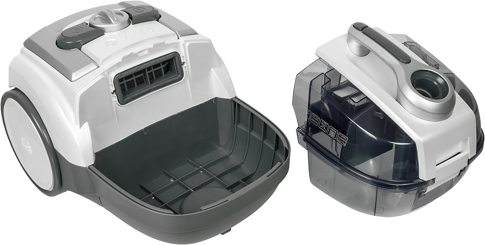 Мощность 1800 Вт. Мощность всасывания 400Вт. Без мешка для сбора пыли. Аквафильтр. Легко разбирается и моется. 5-ступенчатая система фильтрации с аквафильтром, НЕРА-фильтром. Регулятор мощности на корпусе. Пылесборник 3,5 литра. Длина шнура 5 метров. 3 насадки. Турбощётка. Щётка для пыли.