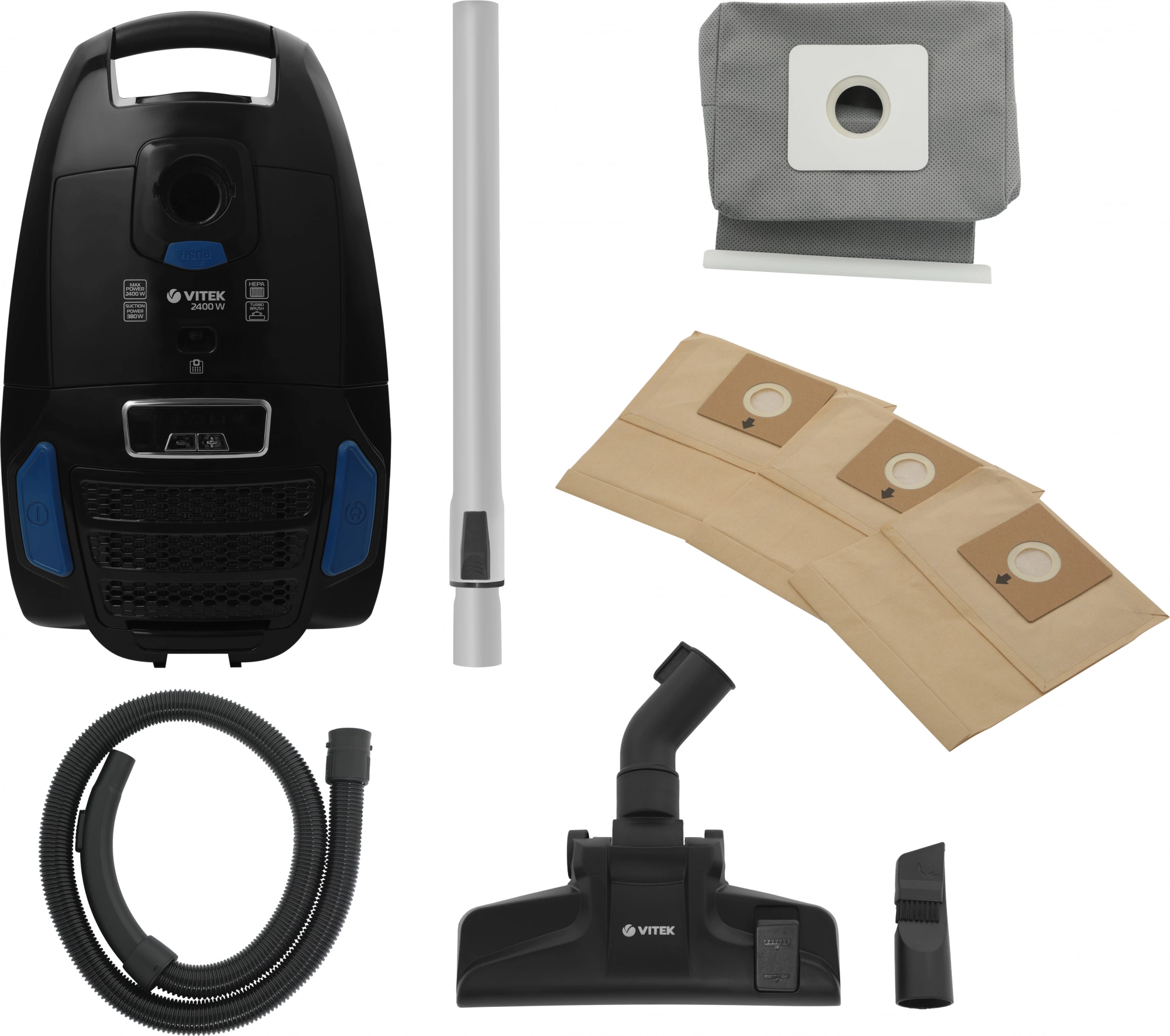 Vitek VT-1899 GY — мощный и надежный пылесос для эффективной сухой уборки в доме или офисе. Благодаря мотору мощностью 2400 Вт и силе всасывания до 380 Вт, он быстро справляется с загрязнениями любой сложности, включая песок, крошки и шерсть домашних животных. Модель оснащена мешковым пылесборником объемом 6 литров, что особенно удобно при уборке больших помещений — не нужно часто очищать пылесос во время работы.