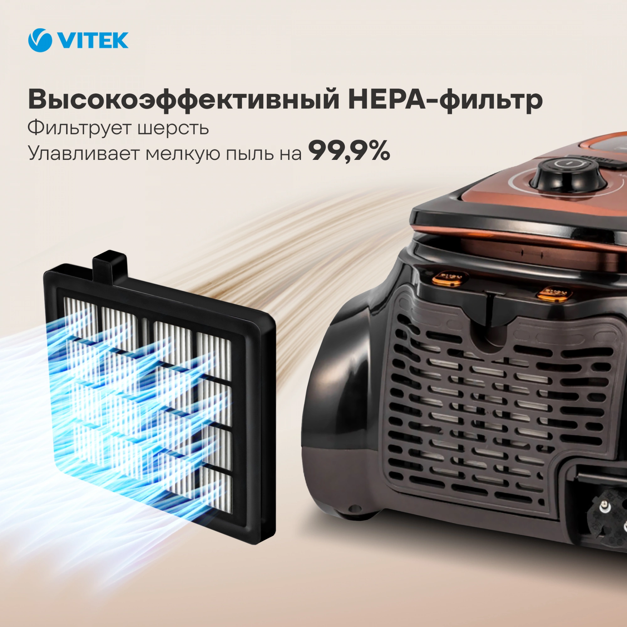 Если вы ищете пылесос без мешка, совмещающий мощность, маневренность и гигиеничность, Vitek VT-8117 BK станет надежным выбором. Этот пылесос для дома справляется с чисткой ковров, ламината и других типов напольных покрытий, обеспечивая результат, заметный с первого применения.