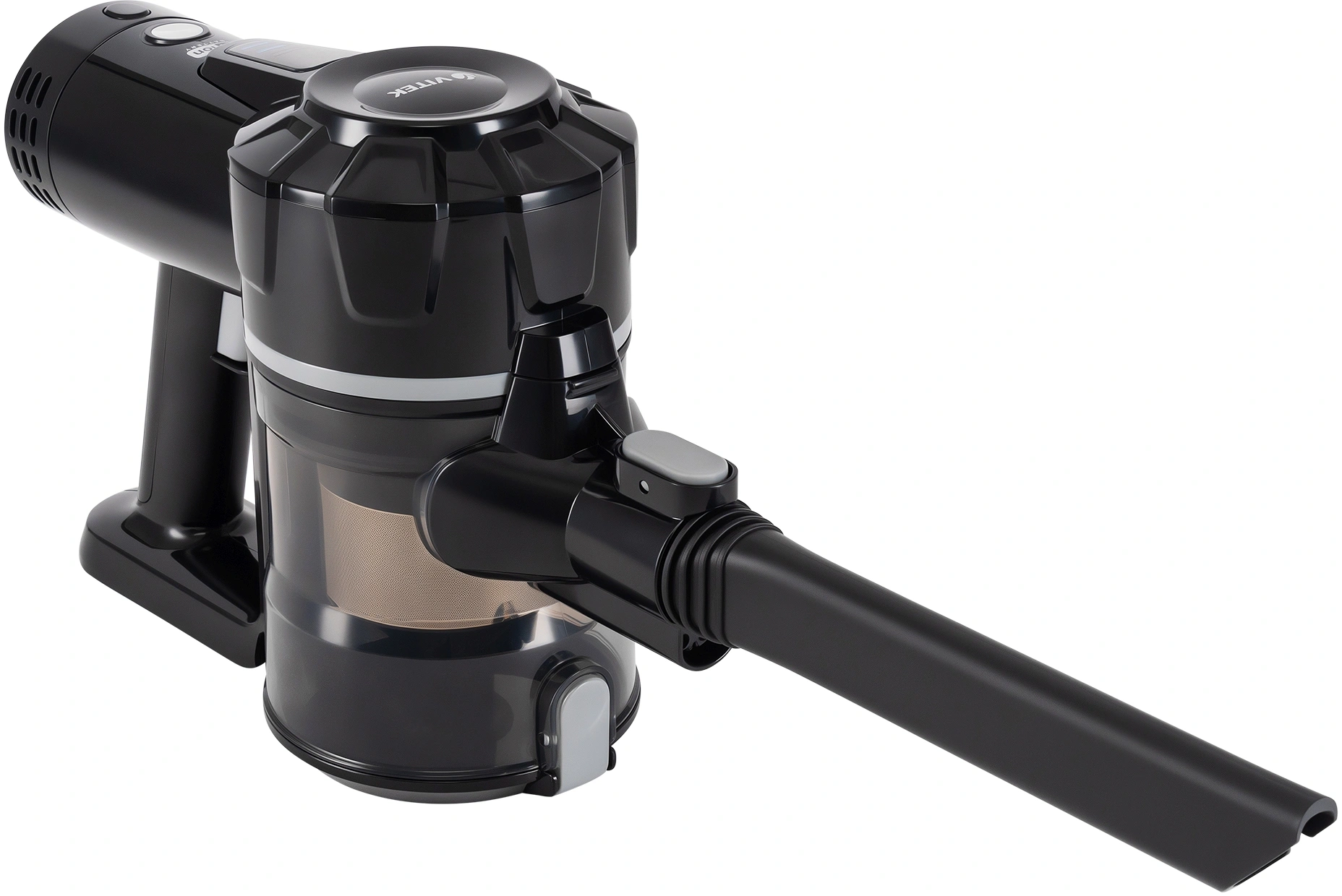 VT-8143 — это вертикальный беспроводной пылесос с продуманной эргономикой: цельная металлическая труба делает конструкцию прочной, а регулировка мощности на ручке обеспечивает комфорт в управлении. Устройство снабжено турбощеткой с подсветкой, что удобно для уборки под мебелью и в слабоосвещенных местах. В комплект входят три насадки, включая комбинированную и щелевую — решение, подходящее для разных типов поверхностей.