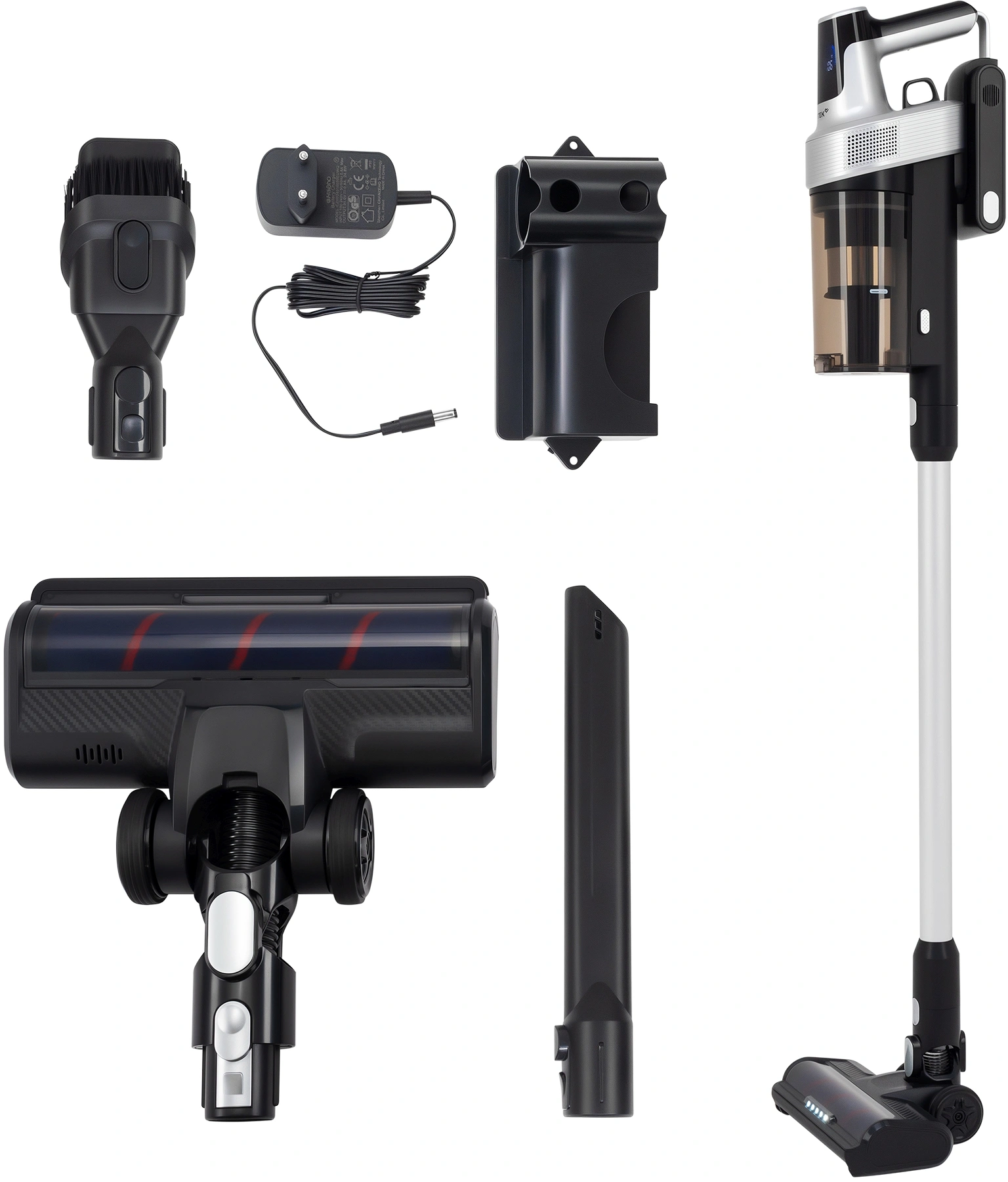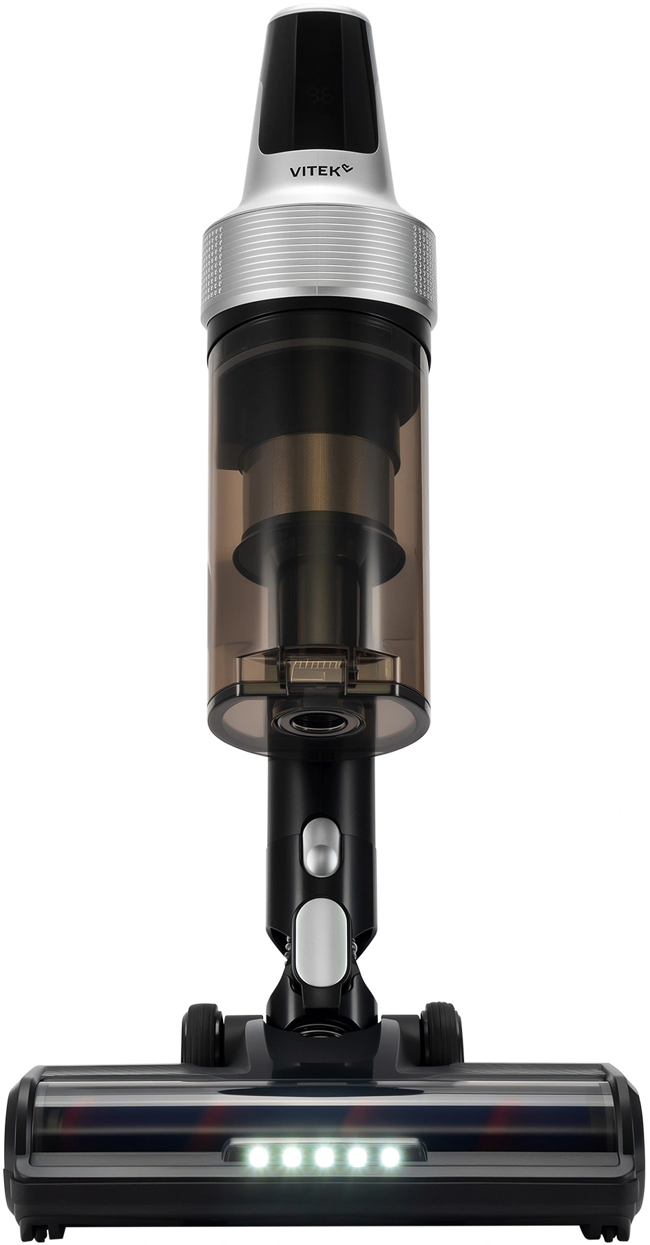 LED-дисплей, легко очищаемый пылесборник, подсветка зоны уборки, прорезиненные колеса