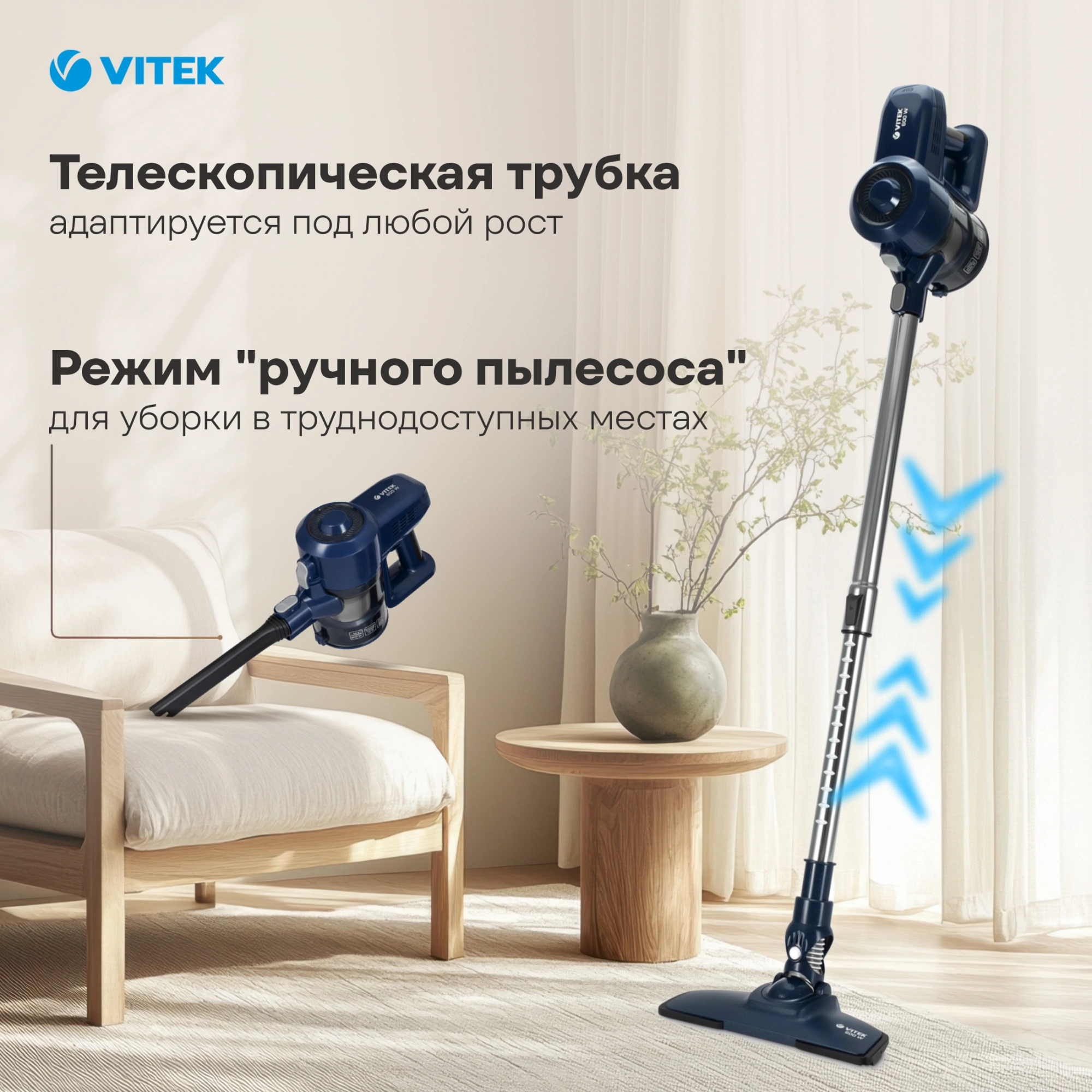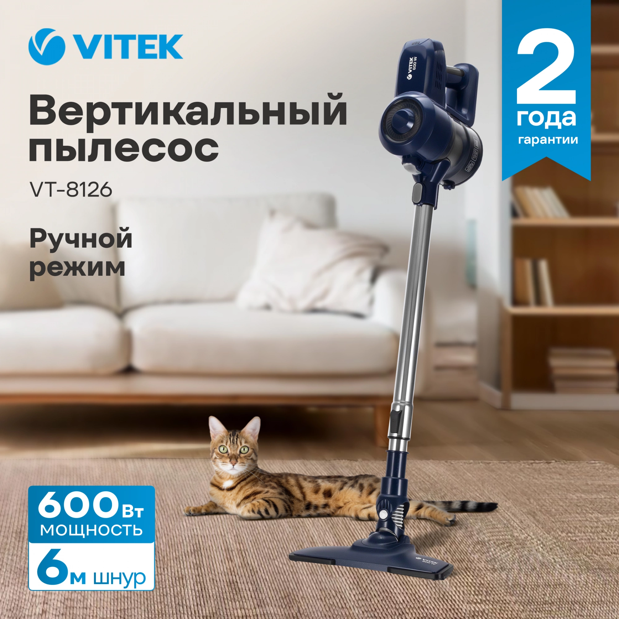 Если вы ищете пылесос вертикальный, сочетающий удобство хранения, высокую мощность и простоту ухода, Vitek VT-8126 — удачный выбор. Это ручной пылесос для дома с контейнером для пыли, который уверенно справляется с пылью на твердых и мягких покрытиях и подойдет для ежедневной уборки.