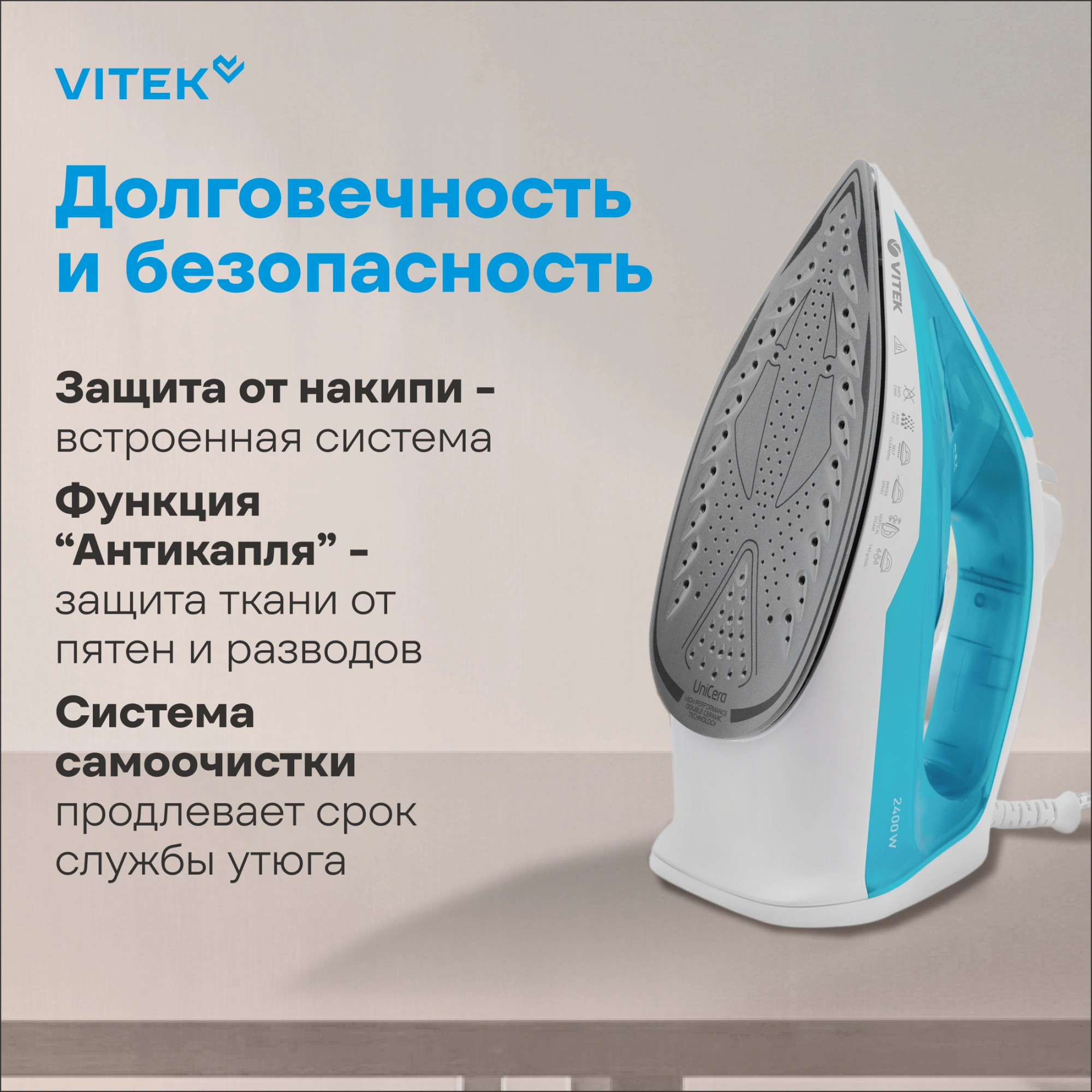 Идеально отгладить одежду из любого вида ткани поможет утюг VITEK VT-8336 с номинальной потребляемой мощностью 2000 –2400 Вт (электропитание 220–240 В~ 50 Гц). Подошва прибора имеет уникальное керамическое покрытие UniCera, обеспечивающее сверхлегкое скольжение. Утюгу можно доверить даже самые деликатные ткани! Помимо сухого глажения с режимом разбрызгивания, в утюге имеется удобная функция вертикального отпаривания (максимальный паровой удар — 140 г/мин). Объем резервуара для воды составляет 300 мл. Благодаря функции «антикапля», системе самоочистки и встроенной защите от накипи пользоваться прибором невероятно комфортно. Купите утюг VITEK VT-8336, чтобы не просто гладить, но и бережно ухаживать за своими вещами.