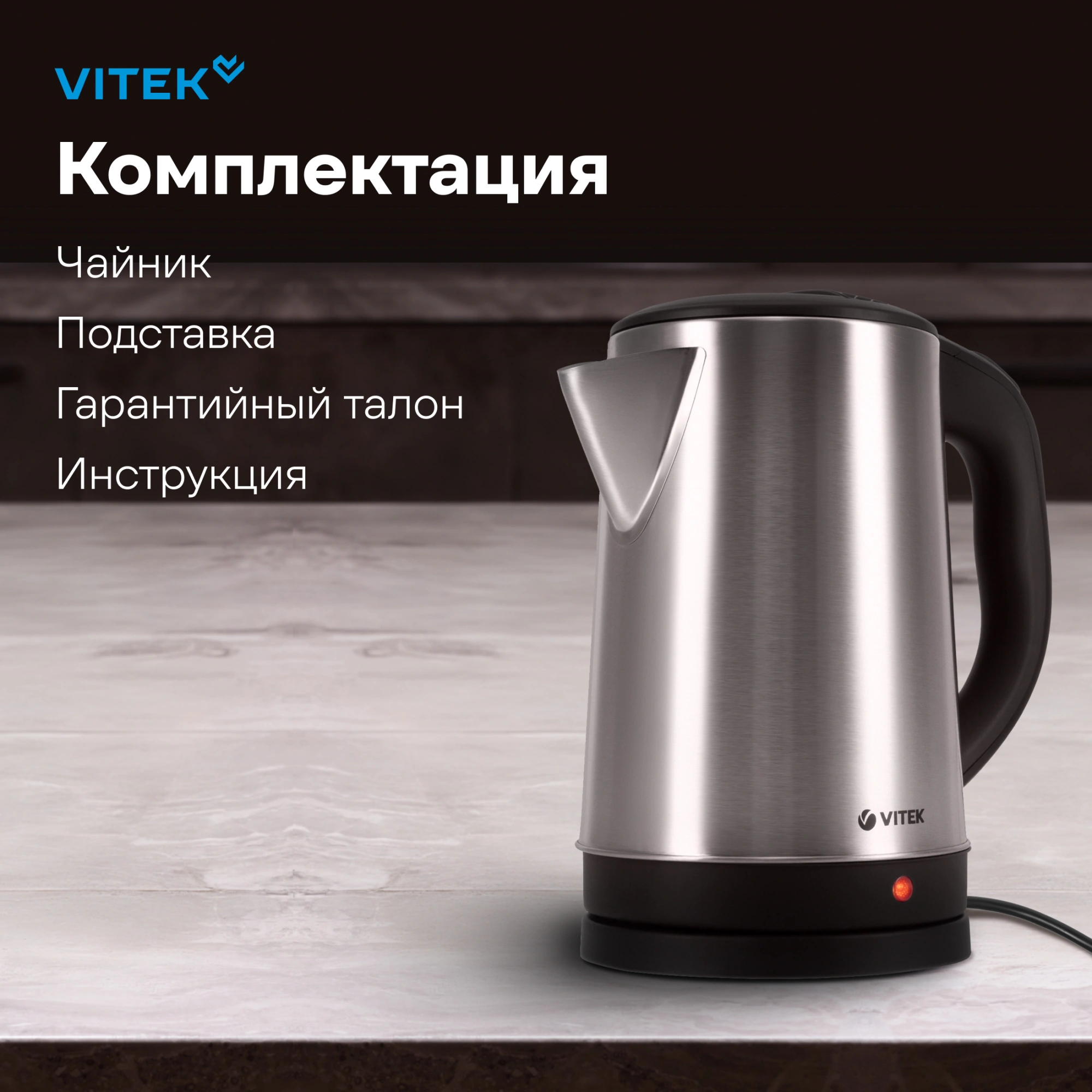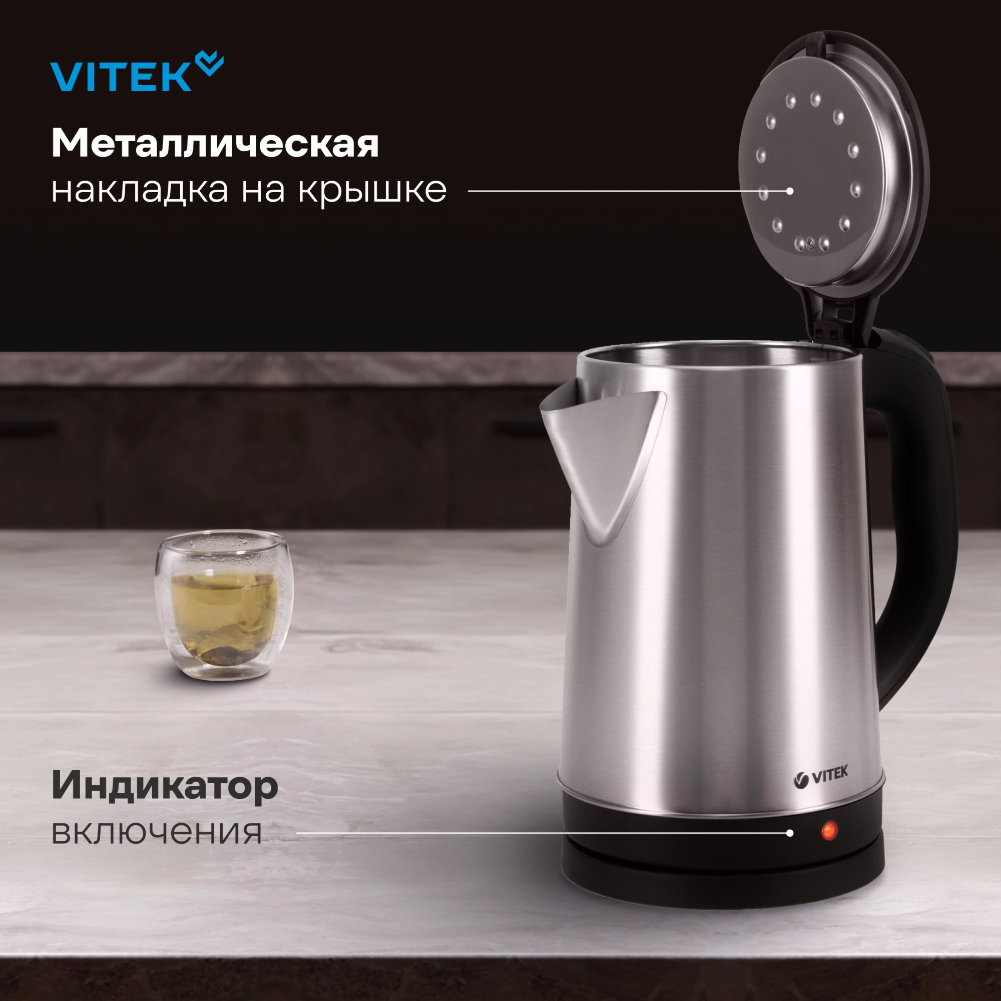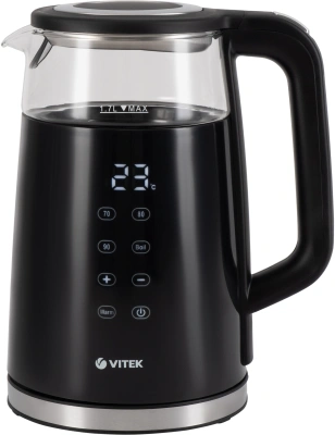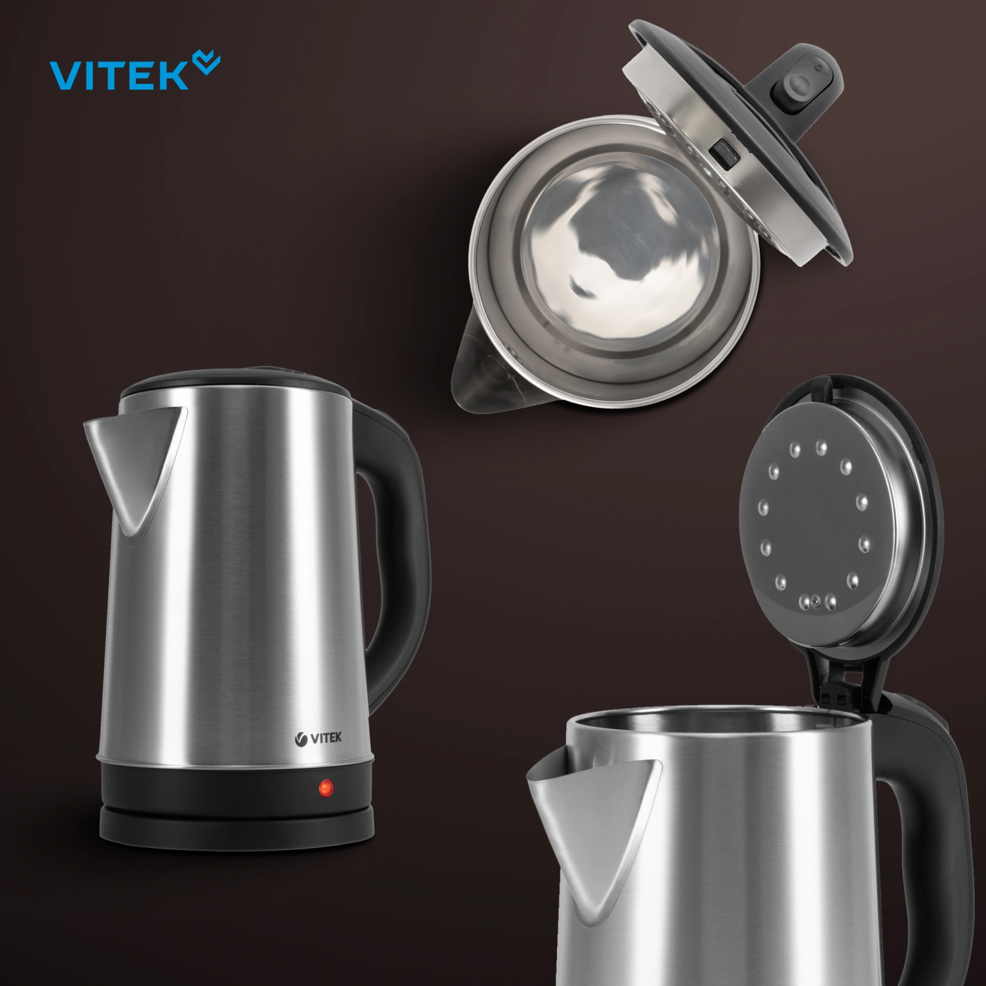 Чайник VITEK VT-1150 поможет вам быстро вскипятить 1,8 л воды для приготовления ваших любимых напитков! Корпус прибора изготовлен из высококачественной нержавеющей стали, которая гарантирует ему длительный срок службы и надежность в работе. Нагревательный элемент прибора встроен в плоское дно и защищен стальной пластиной, поэтому ухаживать за устройством очень легко. Пользоваться чайником невероятно удобно: он способен поворачиваться на 360°, а его крышка открывается механически. Устройство оснащено защитой от перегрева и автоматически отключается при закипании или отсутствии воды. Максимальная мощность — 1700 Вт. Купите чайник VITEK VT-1150: подарите себе и близким действительно отличный кухонный прибор!