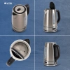 Устройство оснащено скрытым нагревательным элементом: его легче очищать от накипи. Крышка чайника открывается простым нажатием на кнопку, а корпус вращается на 360°. Благодаря фильтру от накипи в ваших напитках не будет неприятных примесей. При помощи шкалы уровня воды вы можете следить за объемом жидкости в чайнике.