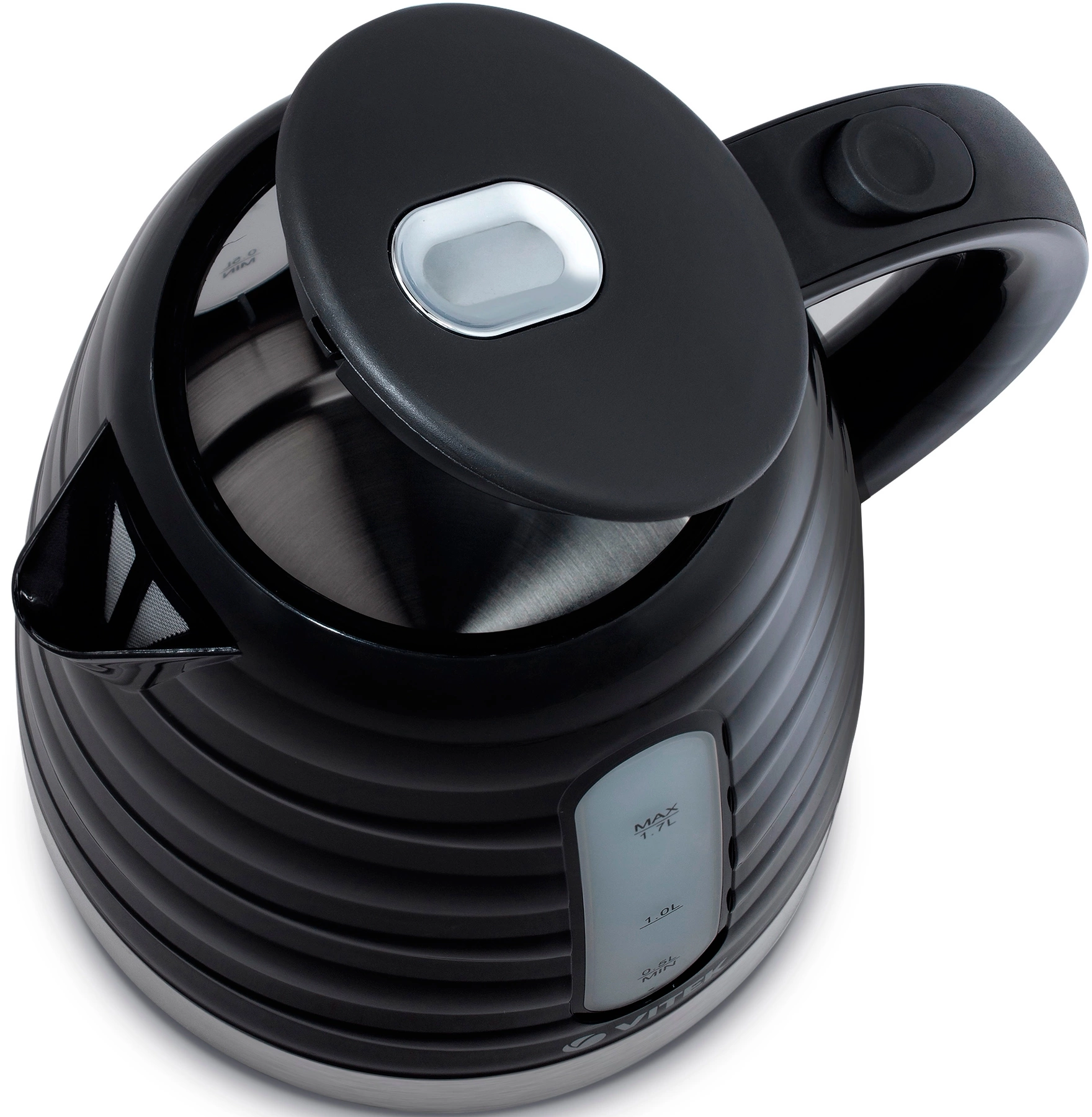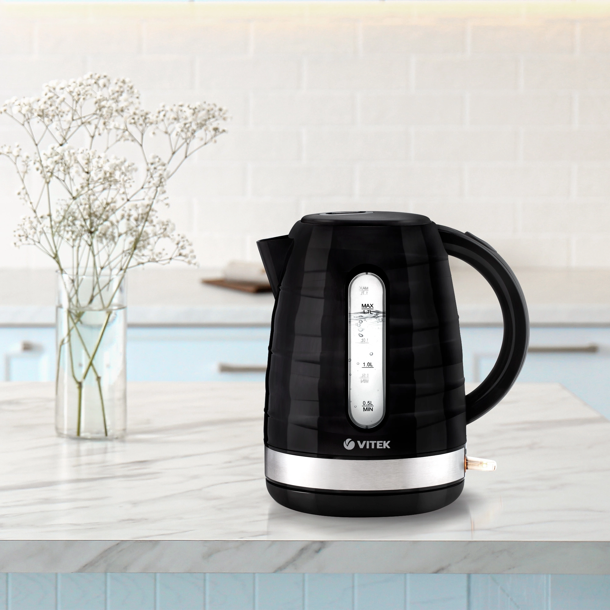 Настоящим украшением вашей кухни станет чайник VITEK VT-1174: его корпус изготовлен из высококачественного пластика черного цвета и дополнен стильной полоской из нержавеющей стали. Прибор оборудован двухсторонней шкалой уровня воды, световым индикатором работы, а его крышка открывается легким нажатием на специальную кнопку. Налейте в чайник воду, включите его, подождите буквально несколько минут и зовите близких к столу!