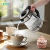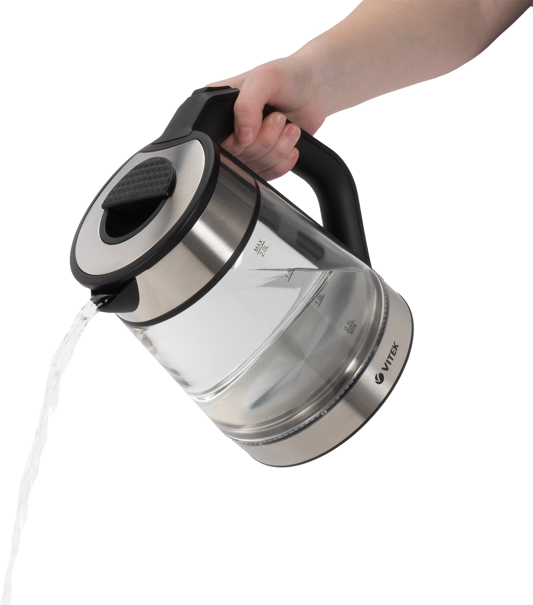 Корпус прибора изготовлен из экологического термостойкого стекла, декорированного стальными элементами. Сквозь него можно смотреть на бурлящую воду — получайте эстетическое удовольствие во время приготовления напитков! Скрытый нагревательный элемент чайника безопасен в эксплуатации и легко очищается от накипи. Корпус, поворачивающийся на 360°, удобно использовать в любой обстановке. Крышка прибора открывается механически. Устройство оборудовано защитой от перегрева и функцией автоотключения при отсутствии и закипании воды, что обеспечивает высокую безопасность в использовании. Купите чайник VITEK VT-1176 — изящный и современный предмет бытовой техники, способный стать центром любых домашних посиделок!