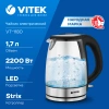 Чайник VITEK VT-1180 с внутренней подсветкой станет настоящим сокровищем для вашего дома. Объема в 1,7 л хватит на несколько порций бодрящего утреннего кофе или вечернего чая. Корпус из экологического термостойкого стекла, декорированный стальными элементами, идеально впишется в интерьер любой современной квартиры.