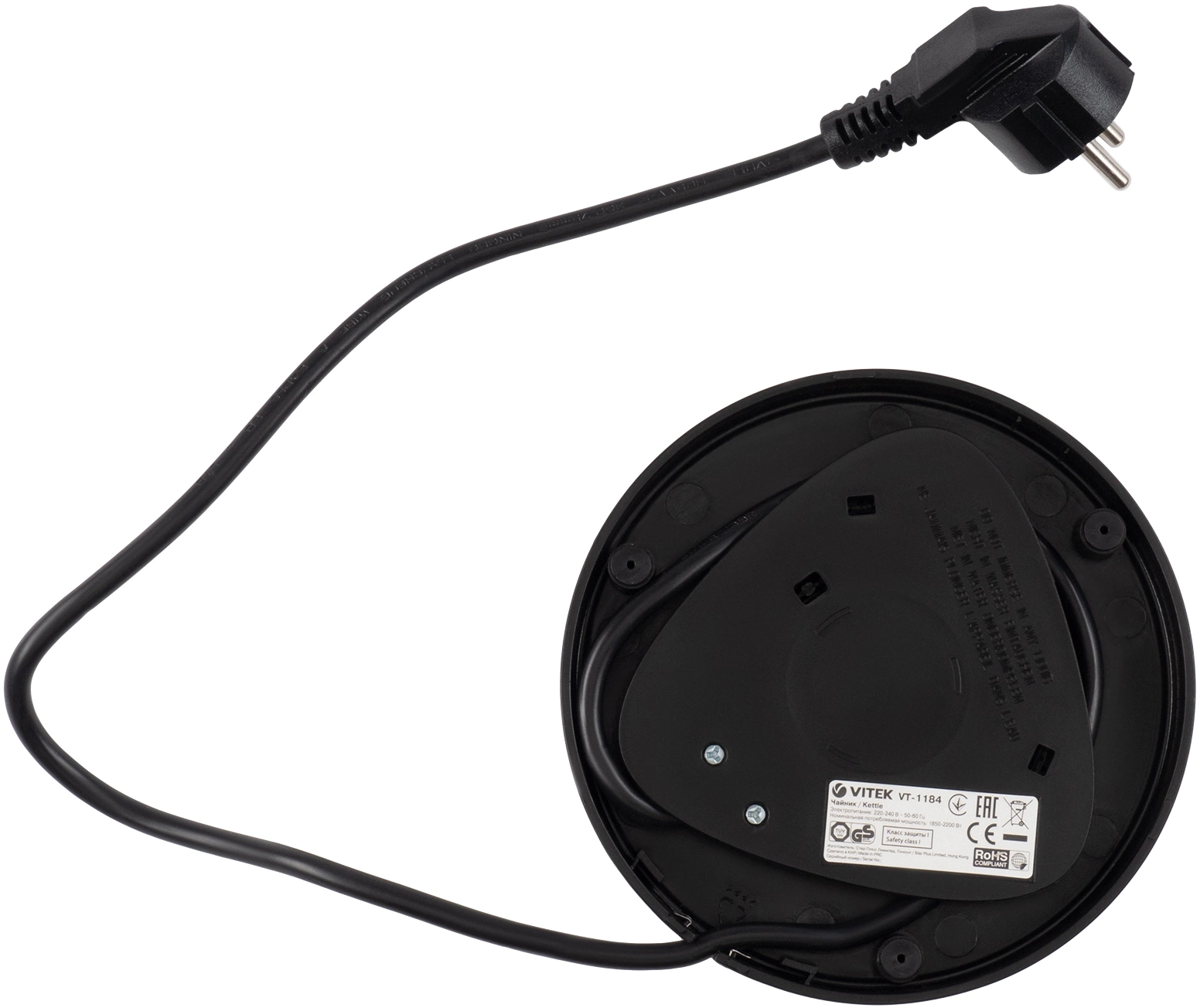 Оснащенное сертифицированным английским контроллером STRIX, устройство будет служить вам долгие годы. Скрытый нагревательный элемент обеспечит быстрый нагрев воды и легкость в уходе за устройством. Корпус прибора поворачивается на 360°, а крышка открывается нажатием на кнопку. Благодаря защите от перегрева и автоматическому отключению при отсутствии или закипании воды, чайник VT-1184 абсолютно безопасен. Устройство имеет фильтр от накипи, чтобы сохранить чистый вкус воды. Прибор также оснащен местом для хранения шнура и не занимает лишнего места.