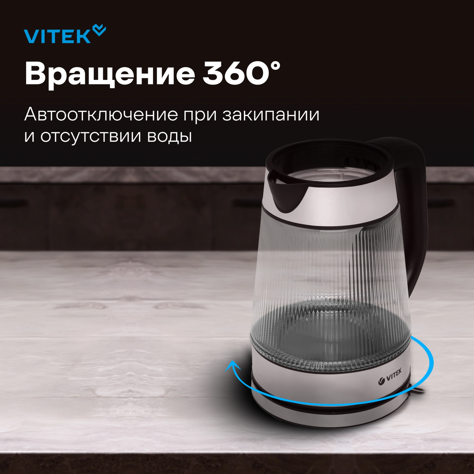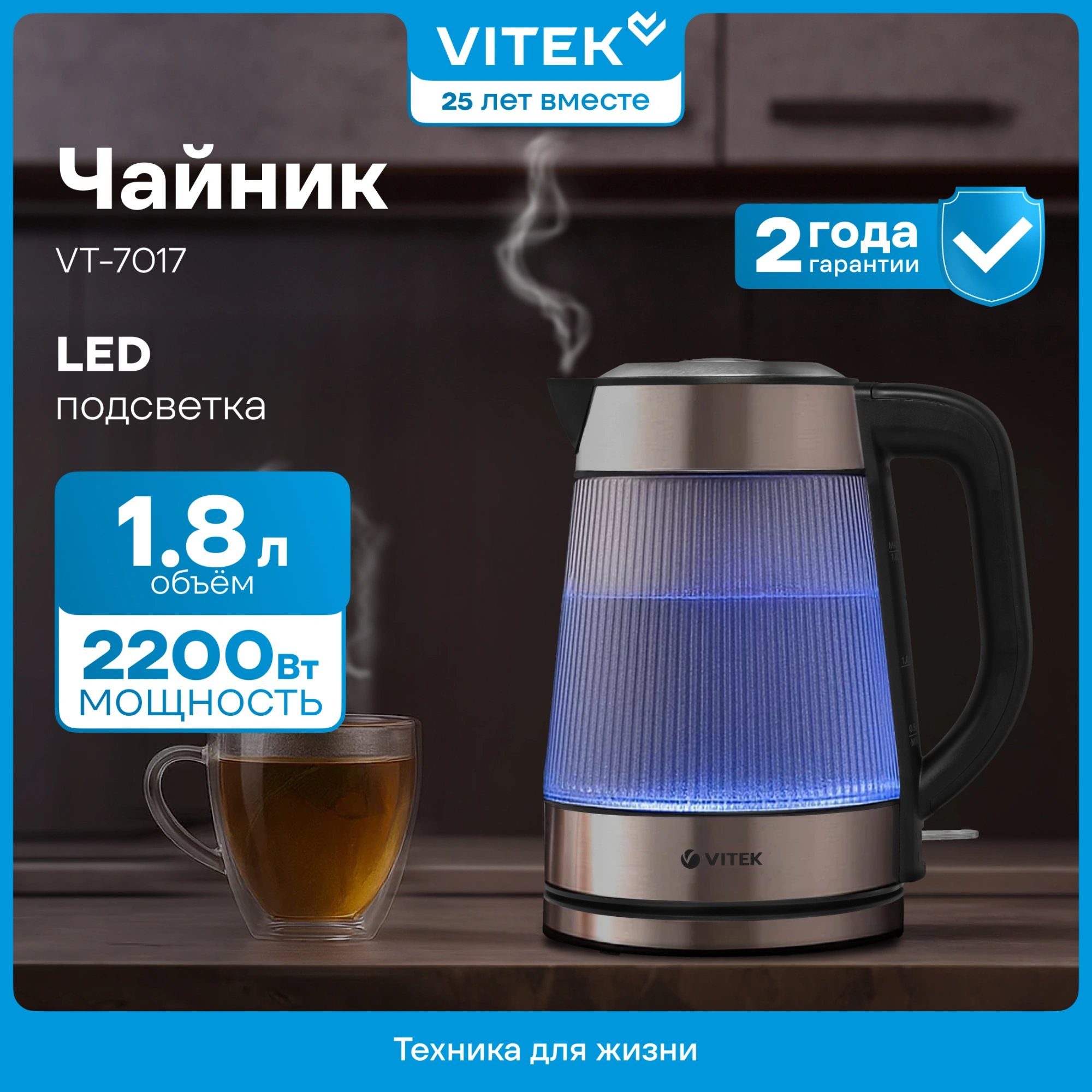 Быстро приготовить ваши любимые напитки поможет чайник VITEK VT-7017 объемом 1,8 л с максимальной мощностью 2200 Вт. Изготовлен прибор из высококачественного текстурированного термостойкого стекла, благодаря чему он стильно смотрится в интерьере. Пользоваться чайником очень удобно: он способен поворачиваться на 360°, а его крышка открывается механически. Специальный фильтр на носике защитит ваши напитки от накипи: при необходимости его легко снять и промыть. Нагревательный элемент прибора встроен в плоское дно и защищен пластиной из высококачественной нержавеющей стали, поэтому ухаживать за устройством очень легко. При перегреве, закипании воды или ее отсутствии чайник отключается автоматически. Купите чайник VITEK VT-7017: сделайте подарок себе и всей семье!