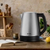 Стильный и лаконичный чайник VT-7040 подойдет тем, кто рационально подходит к обустройству собственной кухни. Вот уж действительно – все, что нужно и ничего лишнего: ручка и основание из матового пластика, защита от перегрева, автоматический способ открывания крышки, удобный отсек для шнура и, конечно, эргономичный корпус из высококачественной нержавеющей стали – правильный выбор для тех, кто заботится о качестве воды и любит ультрамодные кухонные аксессуары. Нагревательный элемент чайника скрыт под сплошной металлической пластиной, так что ухаживать за ним крайне легко: достаточно заполнить его раствором лимонной или уксусной кислоты, оставить на ночь, а после просто промыть в проточной воде.