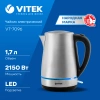 Желаете приобрести надежный и долговечный чайник? Тогда предлагаем вам обратить внимание на модель VITEK VT-7096 объемом 1,7 л. Благодаря сертифицированному английскому контроллеру STRIX чайник прослужит дольше аналогичных. Корпус прибора, имеющий красивую голубую подсветку, изготовлен из нержавеющей стали, которая сохраняет природные свойства воды и исключает размножение бактерий. Крышка открывается автоматически. Прибор имеет шкалу, которая показывает объем воды в чайнике.