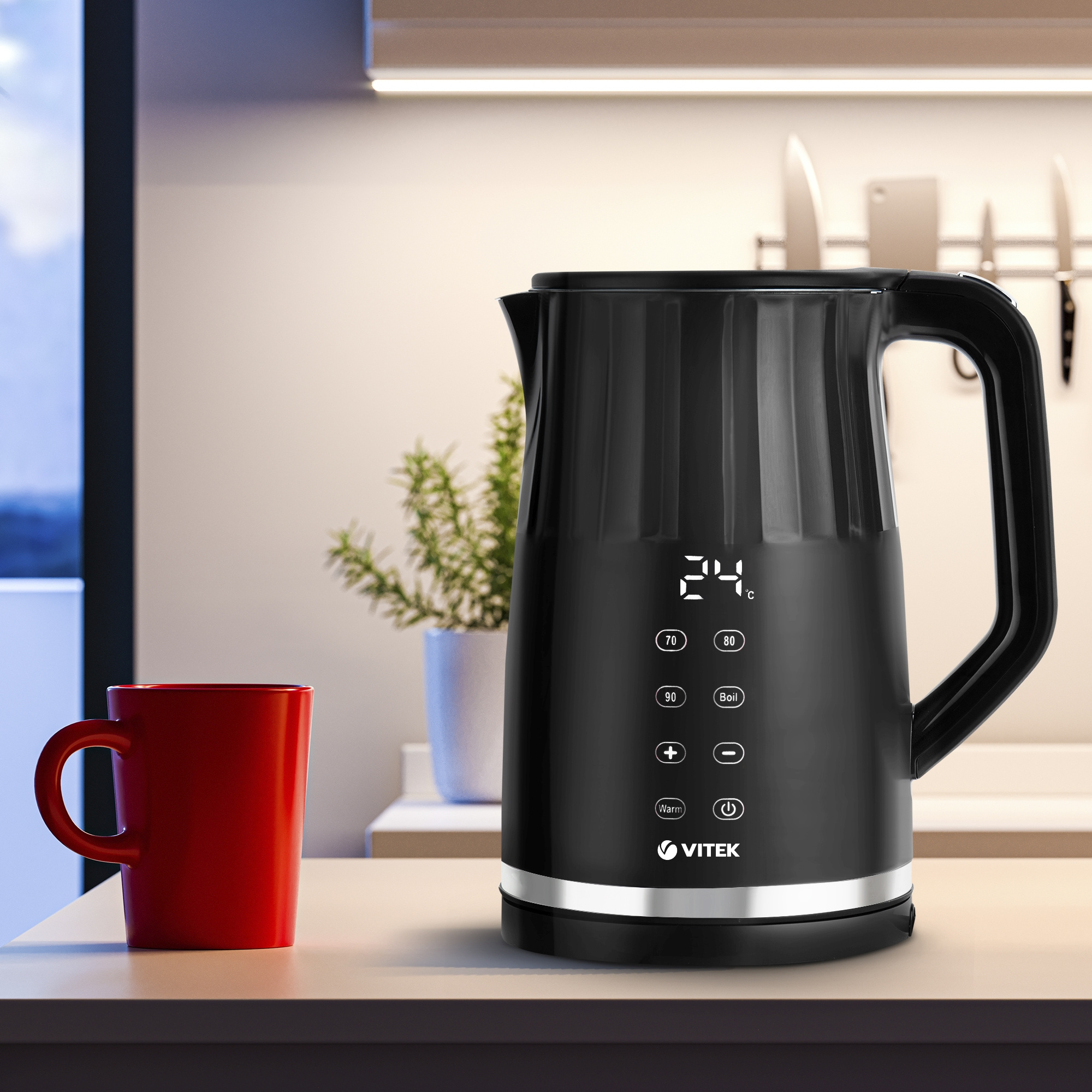 Лаконичные формы и элегантный дизайн чайника VITEK VT-8826 превратят его в один из самых желанных аксессуаров на Вашей кухне! Корпус чайника выполнен из высококачественного пластика в комбинации с нержавеющей сталью в форме элегантного кувшина. Благодаря технологии Cool touch он абсолютно безопасен в работе: поверхность не нагревается в процессе кипячения воды! В чайнике предусмотрено 4 автоматических режимов подогрева воды — 70°С /80°С/ 90°С/100°С и 13 режимов регулировки температуры нагрева воды: от 40 до 100 °С, а также функция поддержания температуры (до 2 часов). Нельзя не отметить инновационную индикацию температуры воды, расположенную на фронтальной части корпуса. Смотрится очень стильно и современно! Нагревательный элемент чайника VT-8826 встроен в плоское дно и надежно защищен стальной пластиной, это позволяет не только сделать чайник привлекательным даже изнутри, но и делает его чистку максимально удобной. Среди характеристик безопасности использования чайника стоит отметить отключение при отсутствии воды и автоотключение при закипании воды. Для удобства чайник обеспечен местом для хранения шнура. Максимальная мощность чайника - 2200 Вт, максимальный объем - 1,7л.