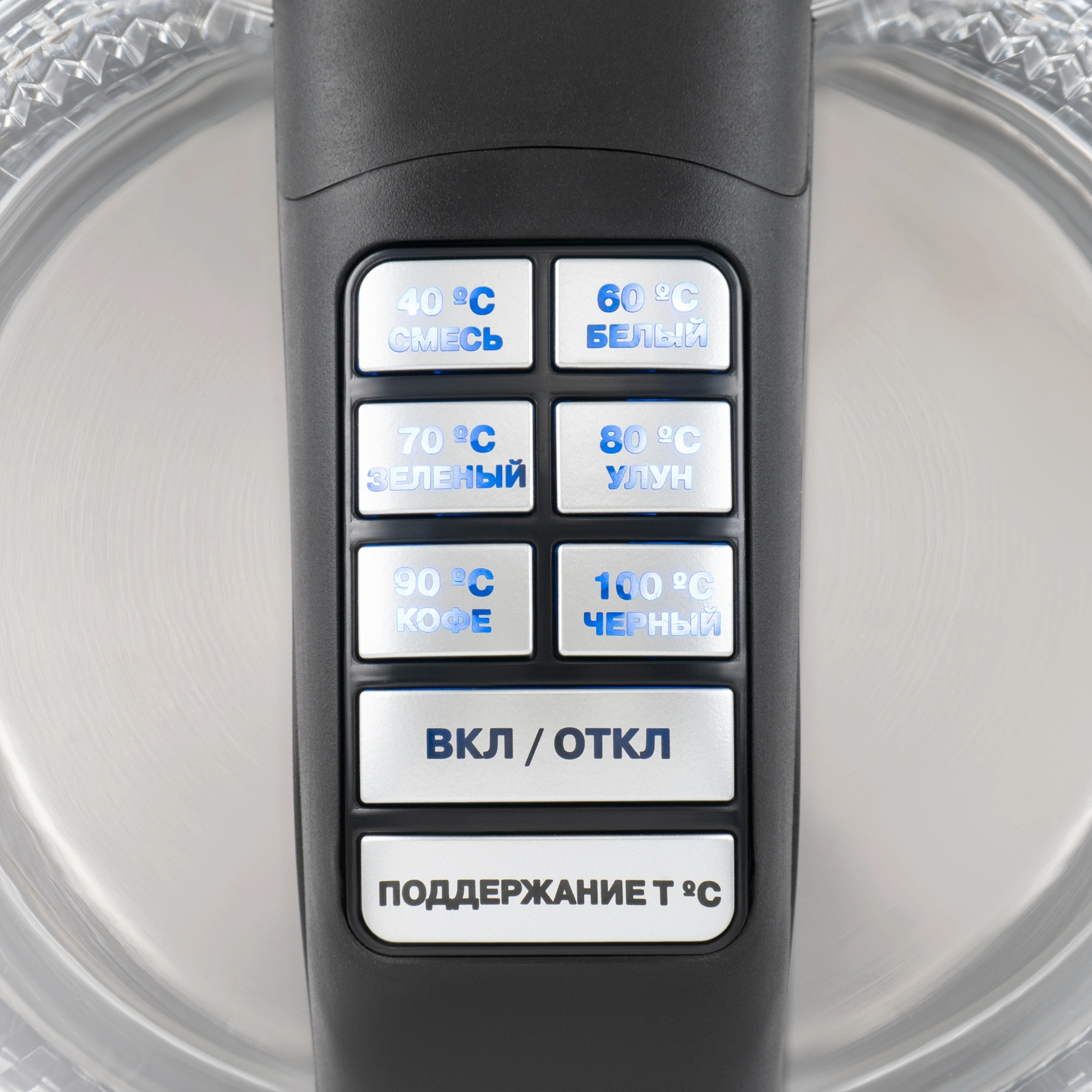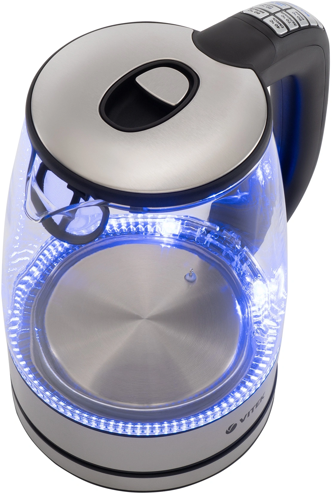 Чайник VITEK VT-8828 объемом 1,7 л с корпусом из высококачественного термостойкого стекла станет незаменимым помощником для всей семьи. Даже сам процесс нагревания воды вызывает настоящее эстетическое удовольствие, так как внутренняя подсветка корпуса меняет свой цвет в зависимости от ее температуры! Прибор имеет 6 режимов (40°С/60°С/70°С/80°С/90°С/100°С), которые позволят не только правильно заварить черный, зеленый, белый, цветочный чай или растворимый кофе, но и приготовить детскую молочную смесь. Выбрать определенный вариант очень легко: достаточно нажать на необходимую кнопку.