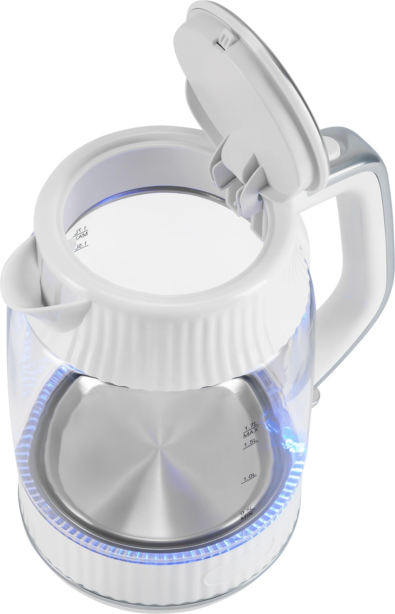 кнопка открытия крышки, подсветка воды, подставка 360, фильтр от накипи