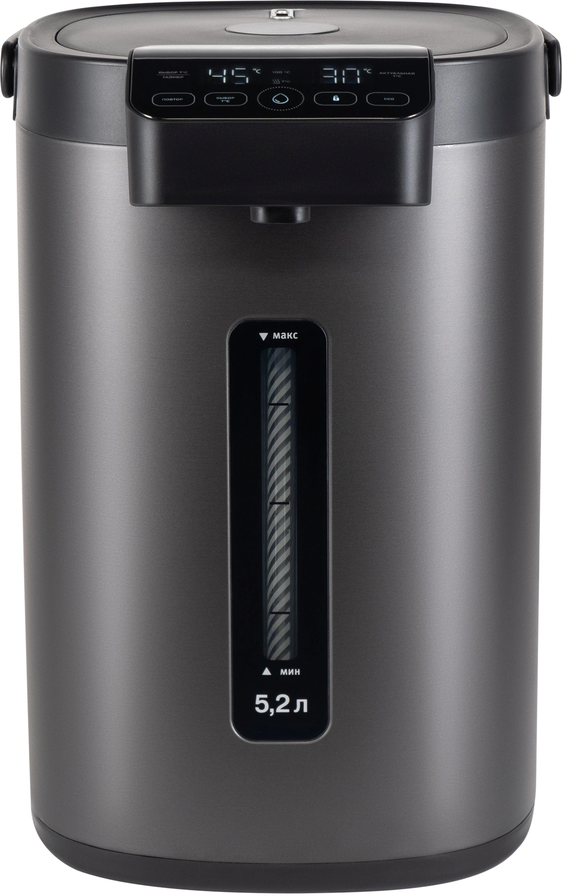 Выбирайте необходимую температуру нагрева в диапазоне от 40 до 95 °C (шаг составляет 5°C градусов) или режим кипячения (100°C). LED дисплей с индикацией актуальной и установленной температуры обеспечит контроль за процессом нагрева, а интуитивно понятная сенсорная панель управления наглядно продемонстрирует все режимы работы термопота.