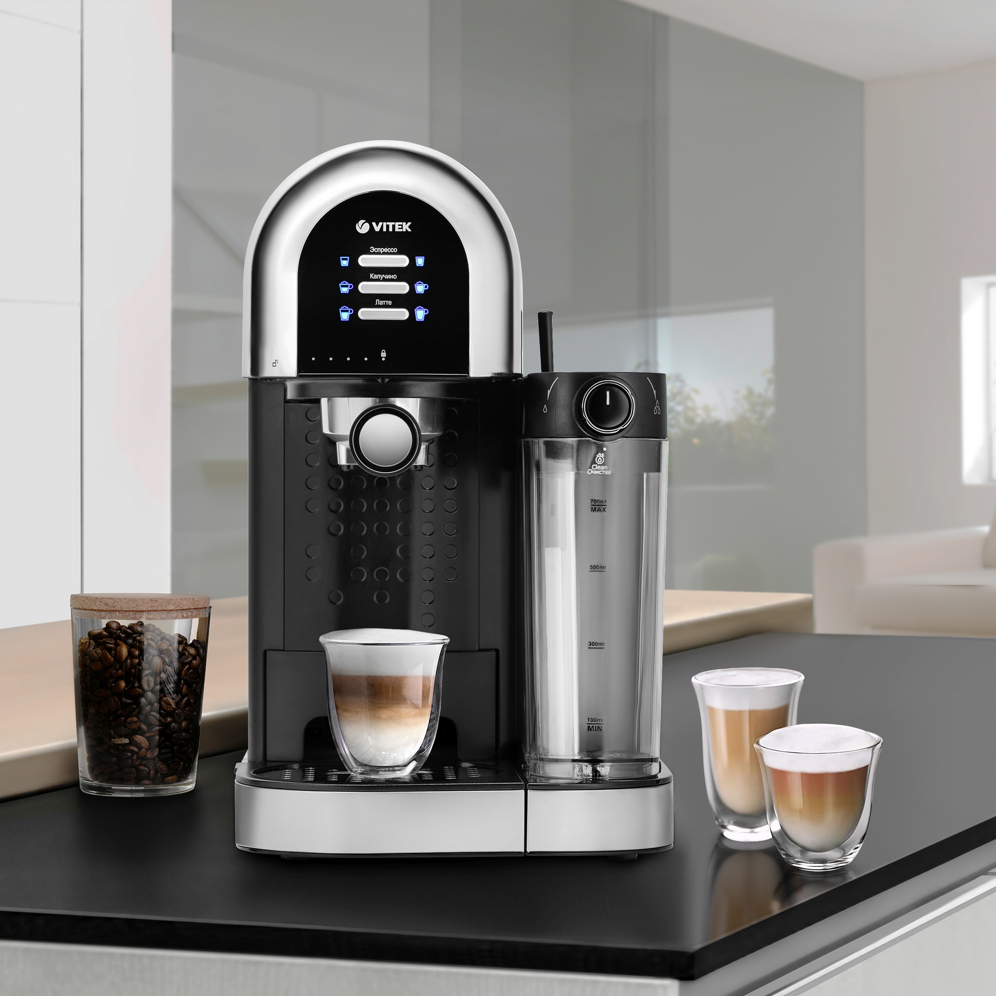 Элегантная кофеварка VT-1525 c итальянской помпой ULKA – это истинный подарок для всех ценителей хорошего кофе. Она создает давление 15 бар и автоматически приготовит любой напиток на ваше усмотрение: латте, эспрессо или капучино. Вам нужно только добавить молотый кофе в рожок! При помощи капучинатора вы получите восхитительную молочную пенку для приготовления любимых напитков. Достаточно налить молоко в резервуар для молока, выставить нужный уровень пенки в зависимости от напитка, нажать на кнопку и кофеварка приготовит ароматную чашку латте или капучино. Одновременно с этим Вы можете выбрать объем напитка и приготовить одну или две порции. Кофеварка также оснащена термоблоком: он не только обеспечивает безупречный вкус и быстроту приготовления, но и уменьшает затраты на электроэнергию при использовании прибора.
