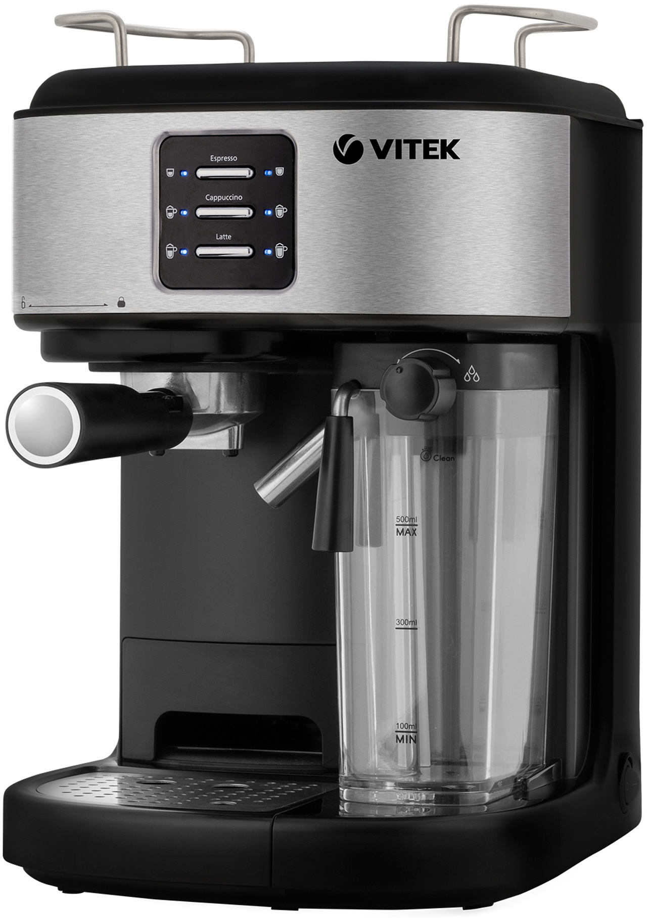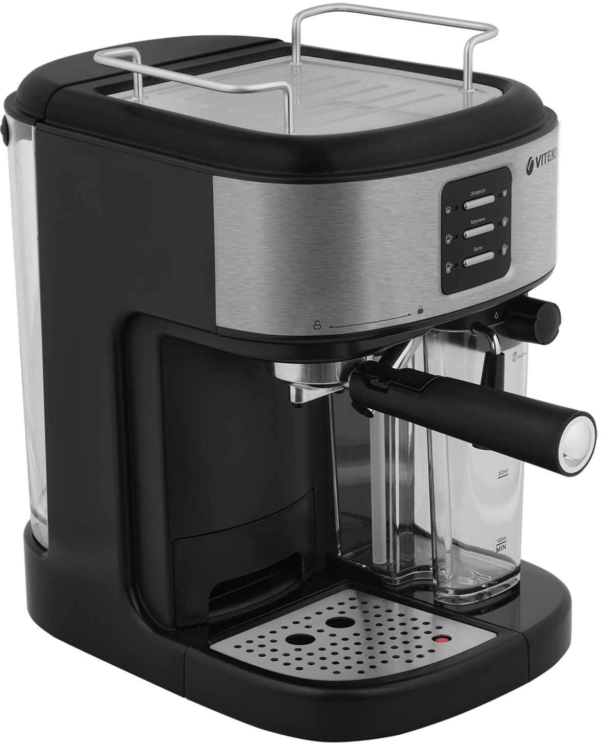 Чтобы каждое утро было действительно добрым, приобретите кофеварку VITEK VT-8489 с максимальной мощностью 1250 Вт (номинальная — 1050–1250 Вт). Устройство оборудовано итальянской помпой фирмы ULKA, обеспечивающей давление в 15 бар, благодаря чему напитки получаются необыкновенно насыщенными. Кроме того, прибор оснащен термоблоком, способствующим улучшению вкусовых качеств кофе, ускорению процесса приготовления и уменьшению затрат на электроэнергию. Кофеварка имеет уникальный фильтр, который позволяет получать идеальный эспрессо с густой ароматной пенкой. Этот напиток, а также капучино и латте готовятся нажатием на одну кнопку. Нажатием на другую вы можете взбить пышную молочную пену (емкость съемного резервуара для молока — 500 мл). Объем напитка выбирайте по желанию, используя специальные кнопки (для маленьких чашек в приборе имеется небольшая выдвижная платформа). Хотите подогреть посуду перед приготовлением кофе? Поместите чашки на платформу, расположенную сверху. Для особого комфорта в использовании кофеварка оборудована съемным резервуаром для воды емкостью 1,5 л и съемным поддоном для капель (в комплект также входит удобная мерная ложечка для молотого кофе). О включении прибора вас оповестит специальный индикатор, а в случае перегрева он отключится автоматически. Купите кофеварку VITEK VT-8489: почувствуйте себя настоящим гурманом!