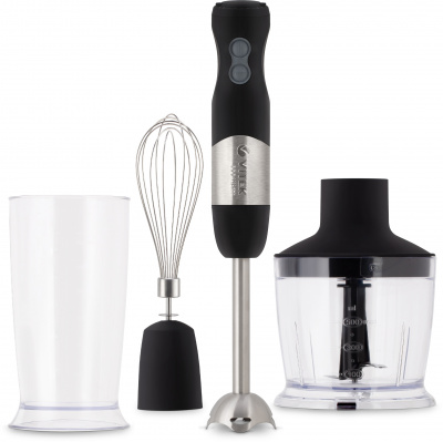 Быстро и качественно измельчить, смешать, взбить любые ингредиенты для приготовления Ваших блюд поможет погружной блендер VITEK VT-8521. Блендерный набор VITEK VT-8521 совмещает в себе все необходимые функции блендера, чоппера и миксера для идеальной обработки продуктов. Модель VT-8521 станет не только незаменимым помощником в приготовлении различных блюд, но также и стильным аксессуаром на Вашей кухне. Погружная часть и лезвия выполнены из нержавеющей стали повышенной прочности, что обеспечивает продолжительную работу блендера. Особая форма погружной части предотвращает разбрызгивание во время работы. Турбо режим и плавная регулировка позволяют выбрать оптимальный режим для смешивания разных видов продуктов. Идеально соблюсти все пропорции рецептуры, взбить и смешать жидкие ингредиенты, готовить вкусные коктейли Вы можете, благодаря мерному стакану объемом 600 мл и пластиковой чаше 350 мл, входящим в комплект. Приобретите блендерный набор VITEK VT-8521: наслаждайтесь легким и быстрым приготовлением разнообразных блюд!