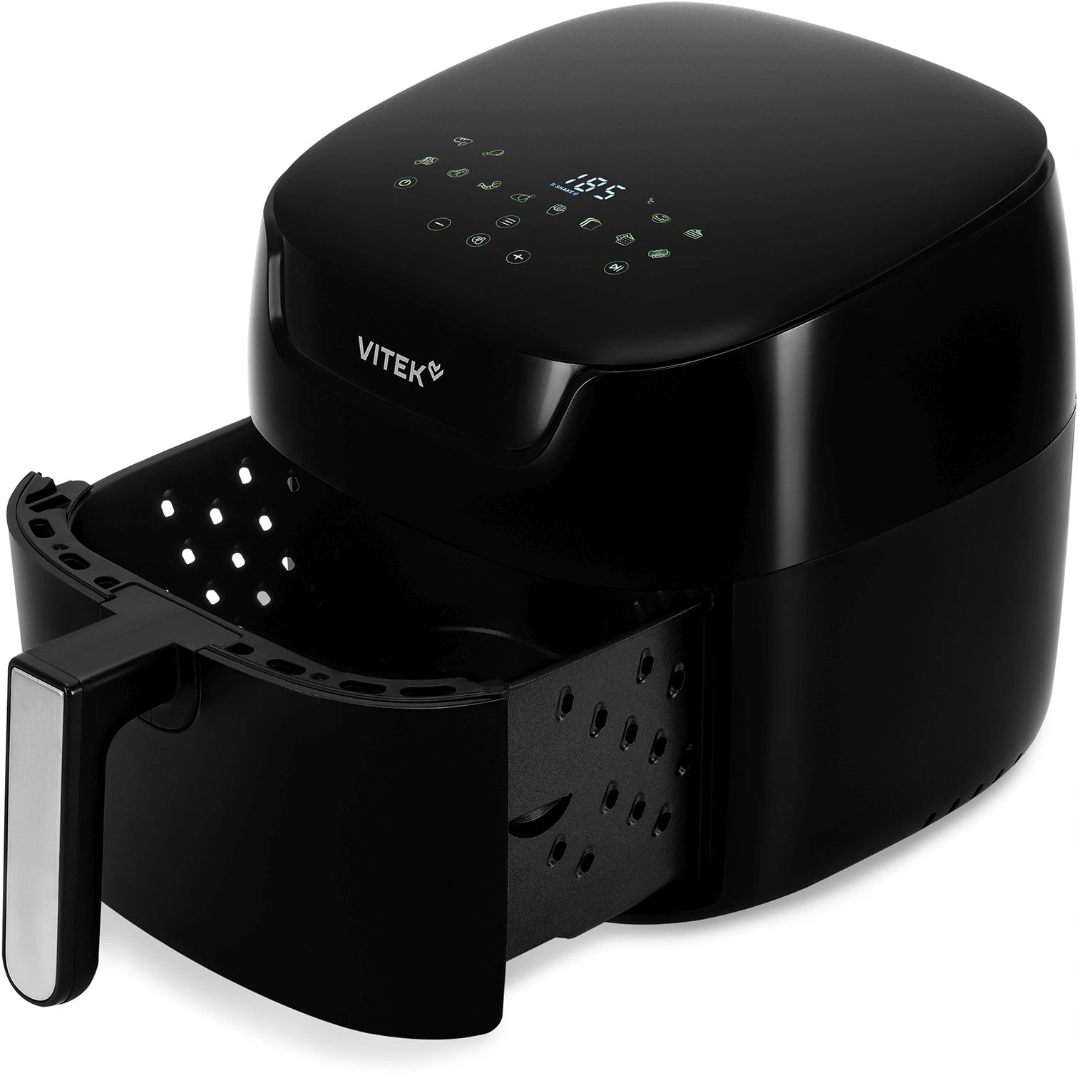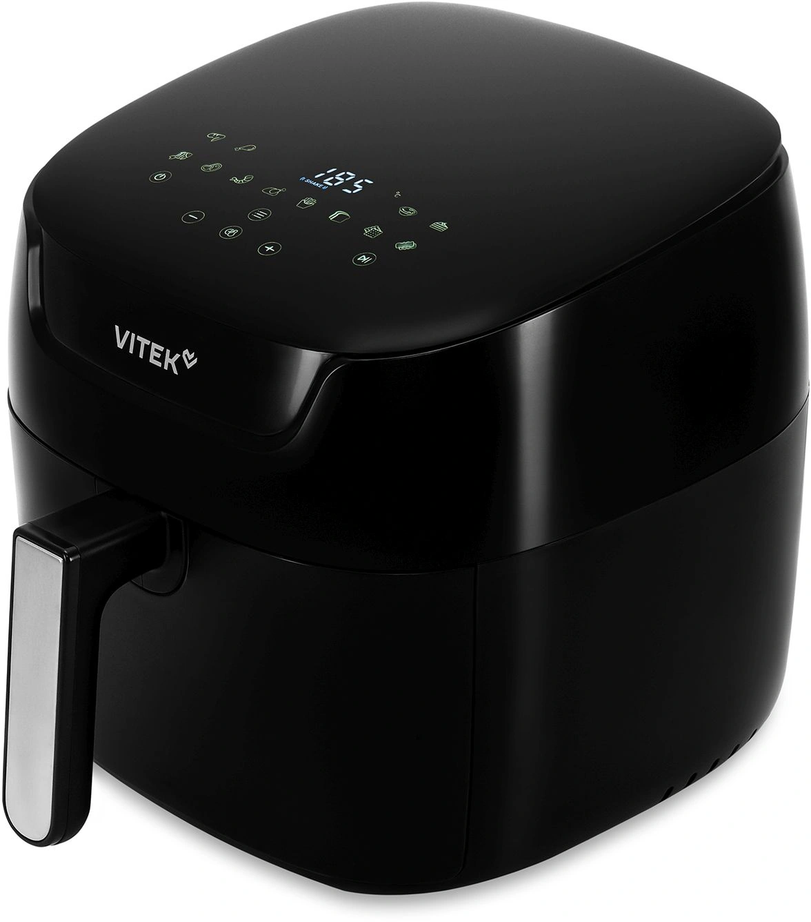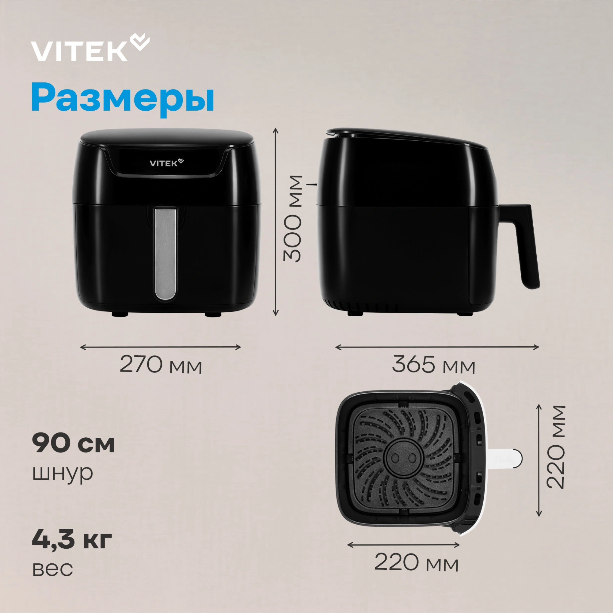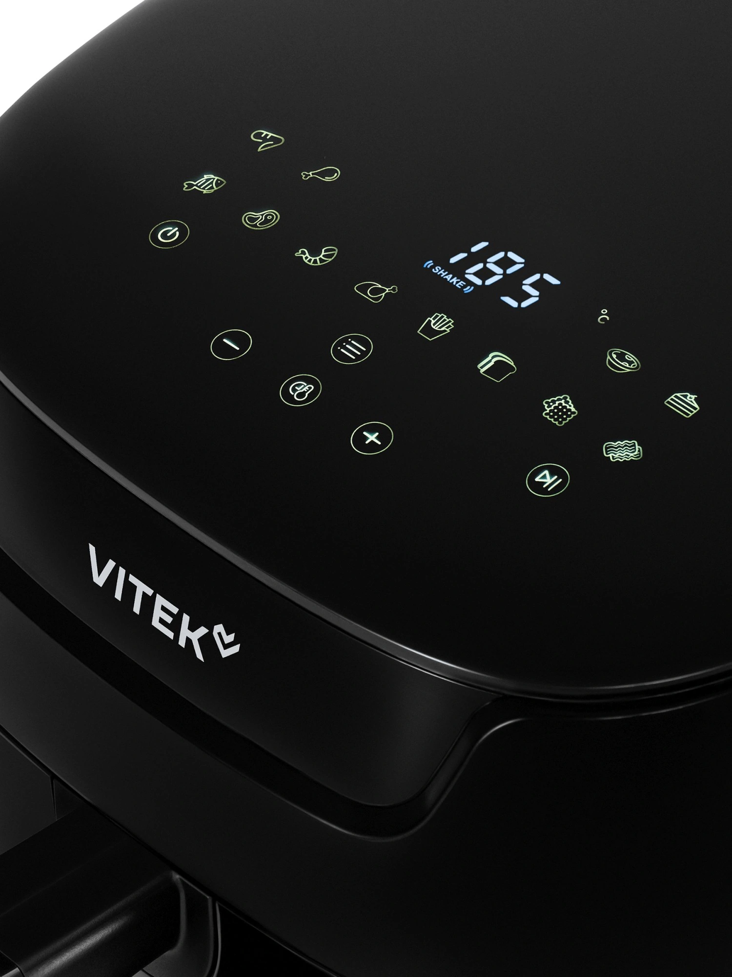 Аэрогриль Vitek VT-AF6001 — стильный чёрный аэрогриль электрический 6 литров, создающий ярко-золотистую корочку без лишнего масла благодаря направленному потоку горячего воздуха.