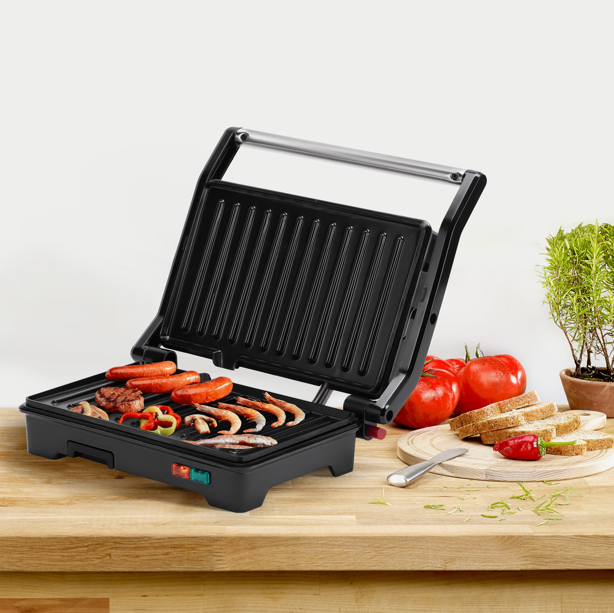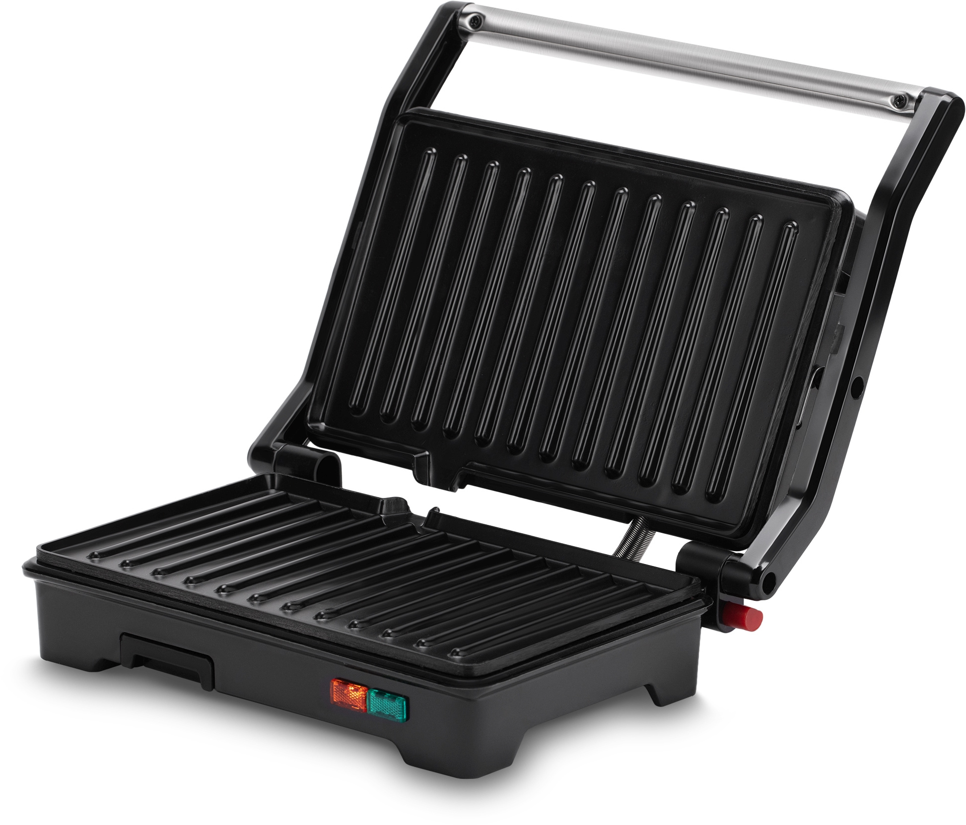Чтобы приготовить мясо, рыбу или овощи с румяной корочкой, не обязательно ждать начала дачного сезона: выполнить такую задачу в домашних условиях способен гриль-пресс VT-2639 (максимальная мощность — 1200 Вт). Этот компактный прибор не займет много места на кухне: размер пластин — 23 х 14 см. Особому комфорту в работе способствует фиксация их открытия на 90° и 180° (последнее обеспечивает возможность использования устройства в качестве открытого гриля). Прибор также оснащен встроенным лотком для сбора масла, поэтому гриль-пресс можно смело ставить и на столешницу, и на стол.