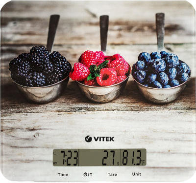 Точно соблюдать пропорции ингредиентов блюд помогут кухонные электронные весы VITEK VT-2408, рассчитанные на массу до 10 кг (цена деления — 1 г). Прибор оснащен функцией последовательного взвешивания (позволяет измерять массу каждого ингредиента и затем узнавать общую), а также функцией тарирования, благодаря которой продукты можно помещать на платформу размером 23,3 х 15,3 см в той или иной емкости. Информация о весе в граммах, килограммах, фунтах и унциях отражается на большом LCD-дисплее размером 51 х 22 мм. Результаты обнуляются автоматически. В комплект с весами входит аккумулятор CR2032: о степени его зарядки, а также о перезагрузке прибора вам «сообщат» специальные индикаторы. Отключается прибор самостоятельно, через несколько минут после того, как вы перестаете им пользоваться. Купите кухонные весы VITEK VT-2408 и готовьте как настоящий шеф-повар!