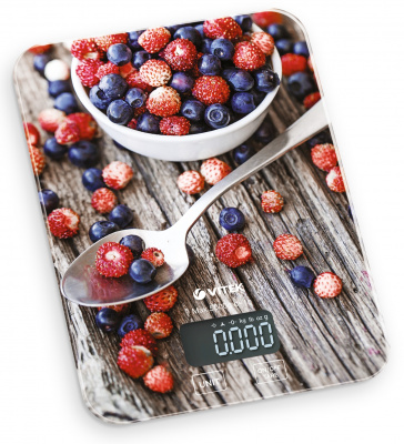 VITEK VT-2425 – не просто кухонные весы, а еще часы и термометр. Большой дисплей с крупными контрастными цифрами позволит вам без труда узнать не только вес вашей порции салата в граммах, фунтах или унциях, но и который час и какова прямо сейчас температура в районе вашего рабочего стола. Абсолютно плоская рабочая поверхность весов, покрытая ударопрочным стеклом, позволяет легко ухаживать за ними, а высокая точность и большой предел взвешивания в 5 кг – взвешивать все, что необходимо, прямо в рабочей посуде. Индикатор низкого заряда батарей подскажет время их замены, а функция автоматического отключения продлит срок их службы. Поверхность весов VITEK VT-2425 декорирована стильным натюрмортом с авокадо, что превращает их в модный аксессуар для любой современной кухни.