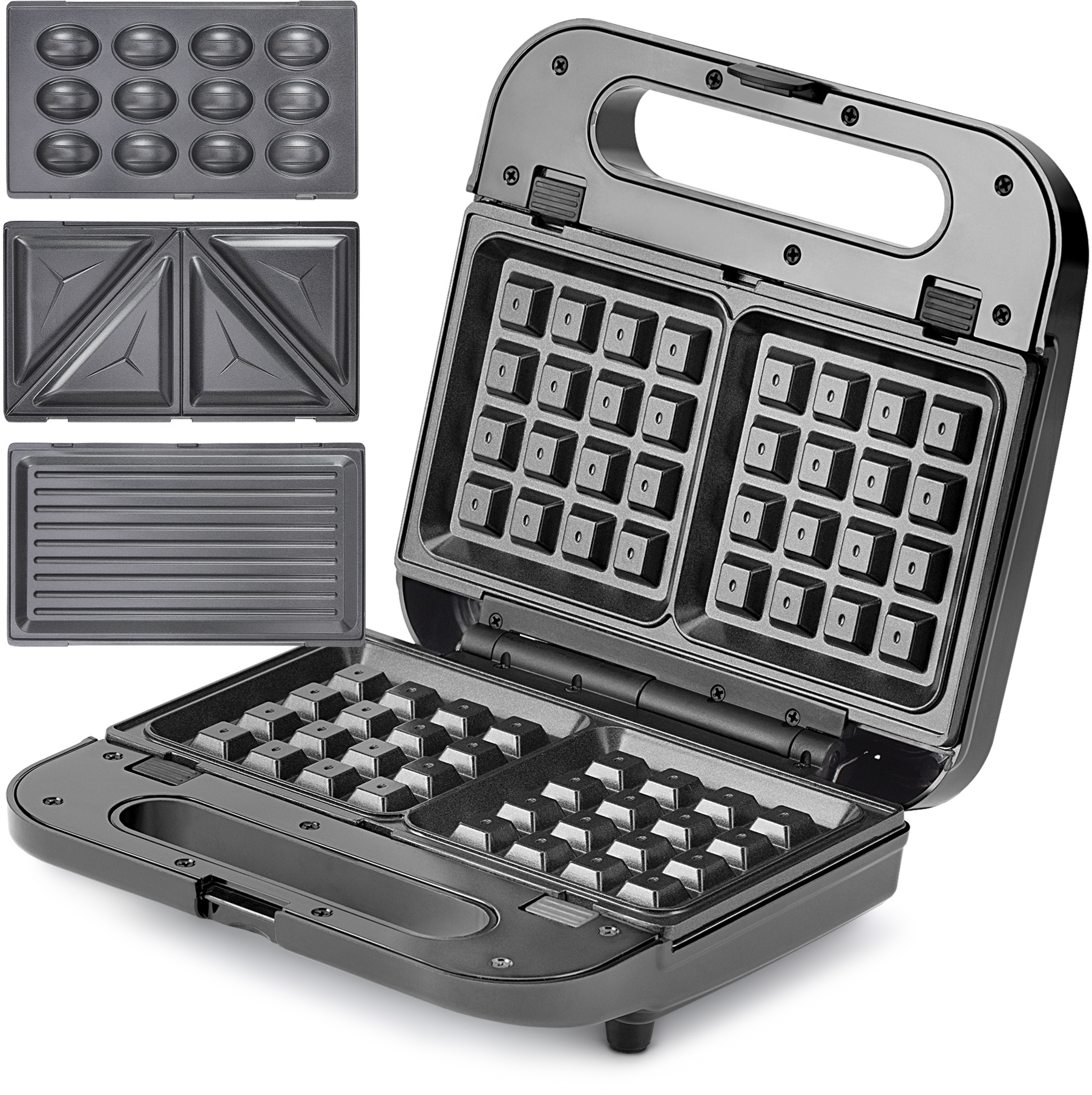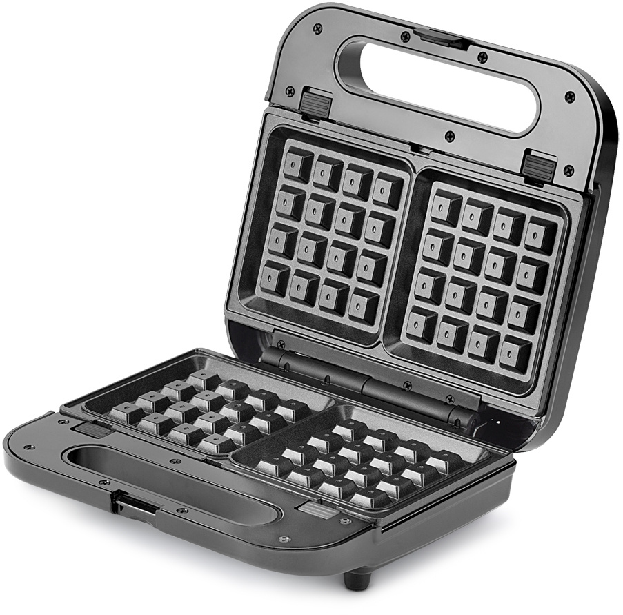 Теперь о компактном приборе с различными функциями можно не только мечтать, ведь вафельница VT-7148 вполне отвечает этим характеристикам! В приборе предусмотрено 4 комплекта съемных пластин с антипригарным покрытием, которые помогут вам приготовить не только нежнейшие вафли, но и блюда на гриле, а также испечь основу для любимых «орешков» со сгущенкой. Специальные индикаторы сообщат о включении вафельницы и ее готовности к работе. А для особой безопасности вафельница оснащена зажимом-блокировкой.