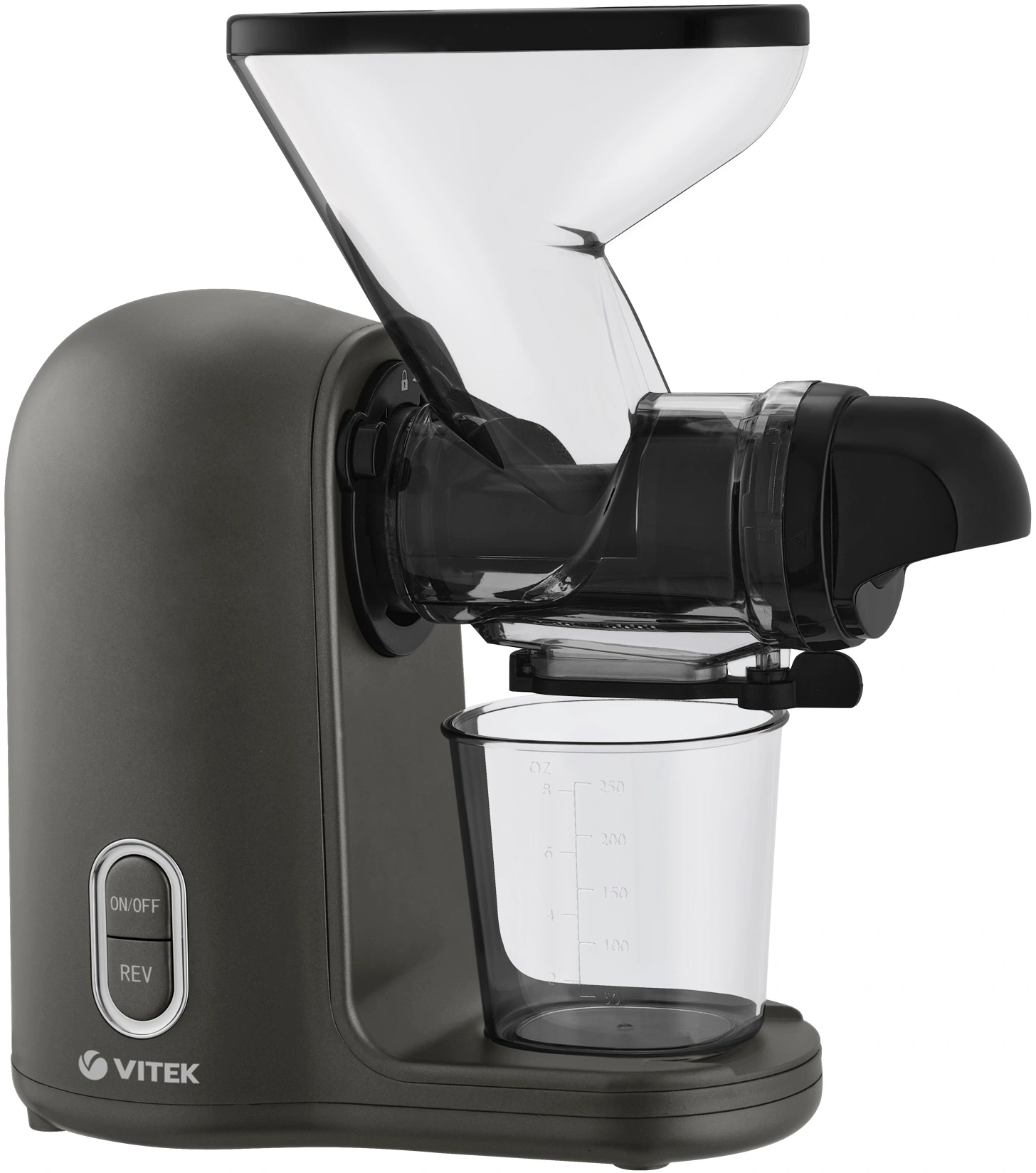 Шнековая соковыжималка VITEK VT-3715 – уникальная находка для тех, кто любит натуральные соки и заботится о своем здоровье! Благодаря технологии холодного прессового отжима в соке сохраняются все витамины и микроэлементы. Главный принцип работы соковыжималки – это медленное (80-100 об/мин.) вращение шнека, продавливающего продукт и исключающего его нагрев. Ширина горловины (48 мм) не предусматривает загрузку целых плодов. Проталкивать кусочки овощей и фруктов можно с помощью пластикового толкателя, который идет в комплекте. В модели VT-3715 установлен эффективный, с низким уровнем шума DC-мотор. Носик для сока оборудован крышкой, с помощью которой можно прекратить подачу сока, когда нужно освободить емкость. Это защищает от проливания капель жидкости на поверхность. В соковыжималке предусмотрено два контейнера: для сока 0,28 л. и мякоти 0,36 л. Прибор также оснащен специальной системой защиты от перегрева электромотора: соковыжималка автоматически отключится в случае его перегрева. Шнековая соковыжималка VT-3715 – это идеальное решение для тех, кто ценит удобство, экономию места на кухне и полезные соки для всей семьи.