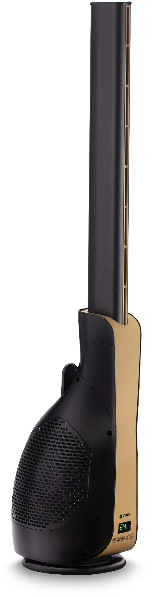 Напольный вентилятор-колонна VITEK VT-2075 высотой 103 см, выполненный в стильном оригинальном дизайне, быстро и эффективно освежит воздух в помещении и подарит вам желанную прохладу. Номинальная потребляемая мощность прибора — 30 Вт. Вентилятор имеет 12 скоростных режимов и 2 режима работы (при первом скорость воздушного потока плавно нарастает и плавно снижается, второй — ночной, с пониженным уровнем шума). Выбрать наиболее оптимальный для вас можно как на сенсорной панели управления, так и с помощью пульта дистанционного управления. Вся необходимая информация о работе вентилятора отражается на LED-дисплее. Для лучшего охлаждения воздуха прибор способен самостоятельно поворачиваться на 70°. Если вы хотите наслаждаться свежим воздухом весь день или всю ночь, установите таймер прибора на 12 часов. Купите напольный вентилятор VITEK VT-2075 — подарите себе особый уровень комфорта в любой, даже самый жаркий летний день.