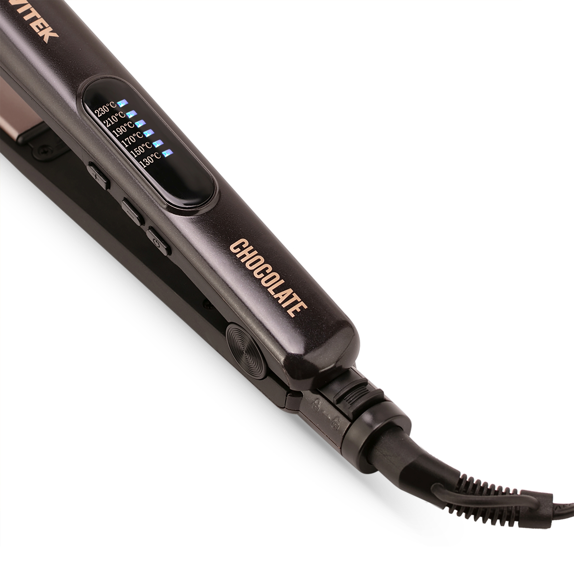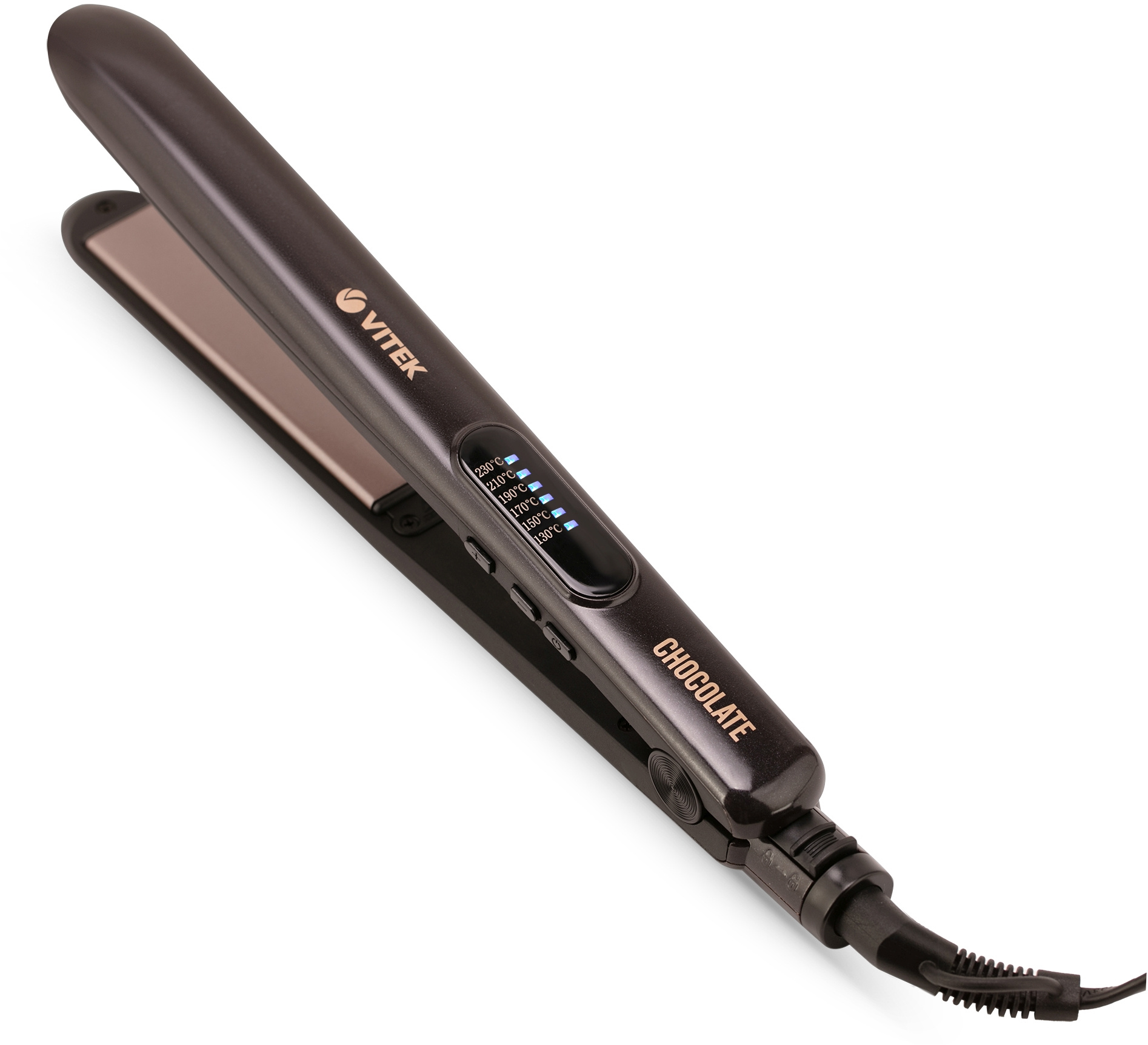 Уложить волосы в гладкую прическу поможет выпрямитель VITEK VT-2246. Он имеет шесть температурных режимов — от 130°С до 230°С: информация о выбранном варианте отражается на LED-дисплее. Пластины прибора размером 24,55 х 125 мм имеют покрытие Tourmaline Ceramic, благодаря которому тепло равномерно распределяется по поверхности, а статическое электричество снимается. Кроме того выпрямитель оснащен технологией PTC Heating, быстро стабилизирующей нагрев, что способствует бережному отношению к волосам и сохранению их здоровья. Важным достоинством прибора является и особая система крепления пластин на пружинах (Floating plates), благодаря чему двигаются плавно и деликатно удерживают пряди, без защемления. Пользоваться выпрямителем очень удобно, благодаря вращающемуся на 360° шнуру длиной 1,8 м. После использования заблокируйте ручку и уберите прибор на полку или подвесьте за специальную петельку. Купить выпрямитель VITEK VT-2246 — значит, подарить себе возможность создавать красивые прически дома и одновременно заботиться о здоровье волос.
