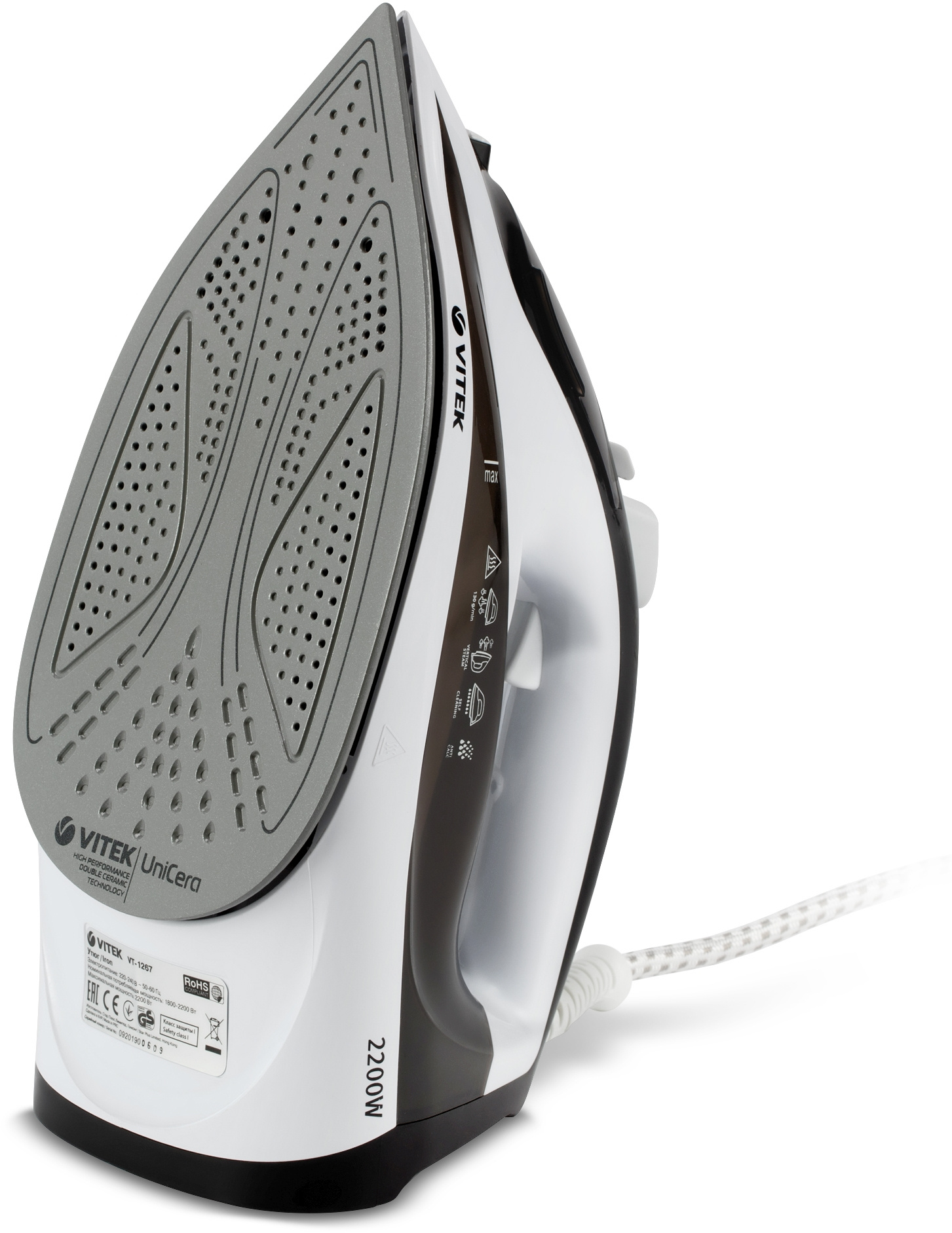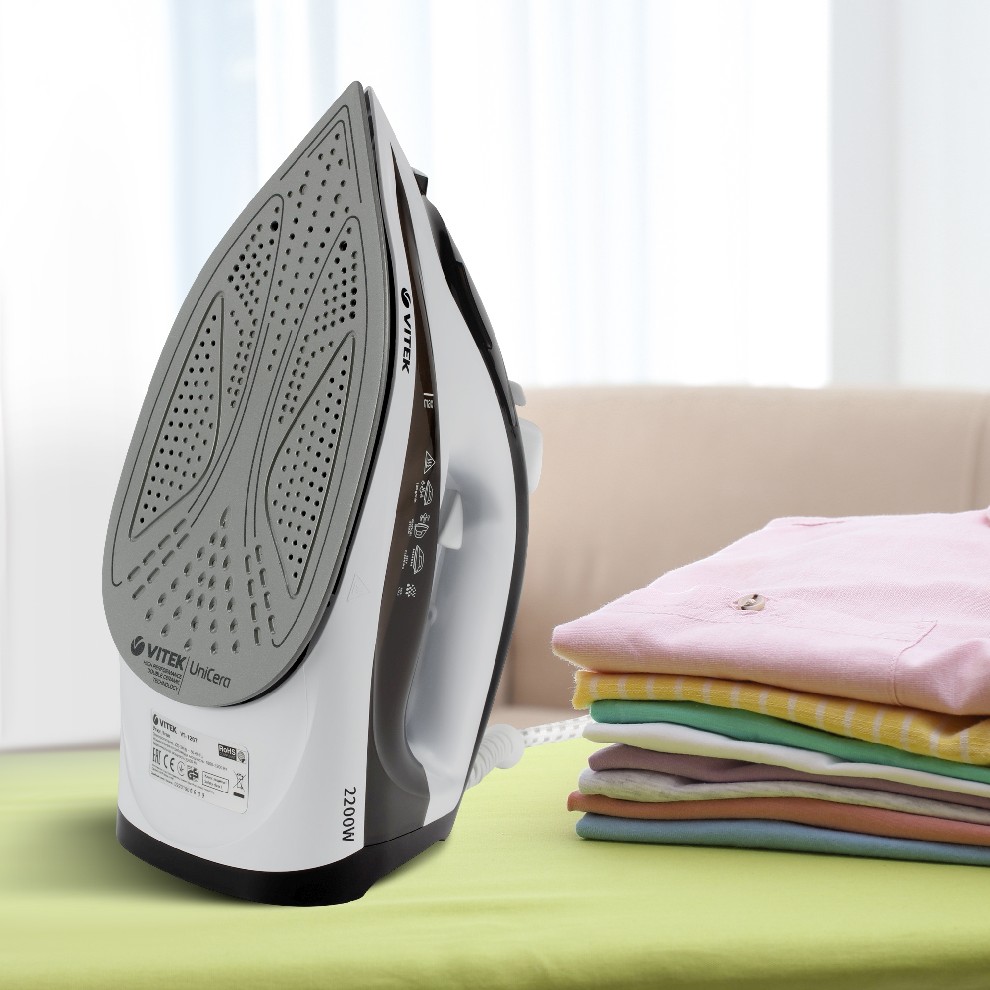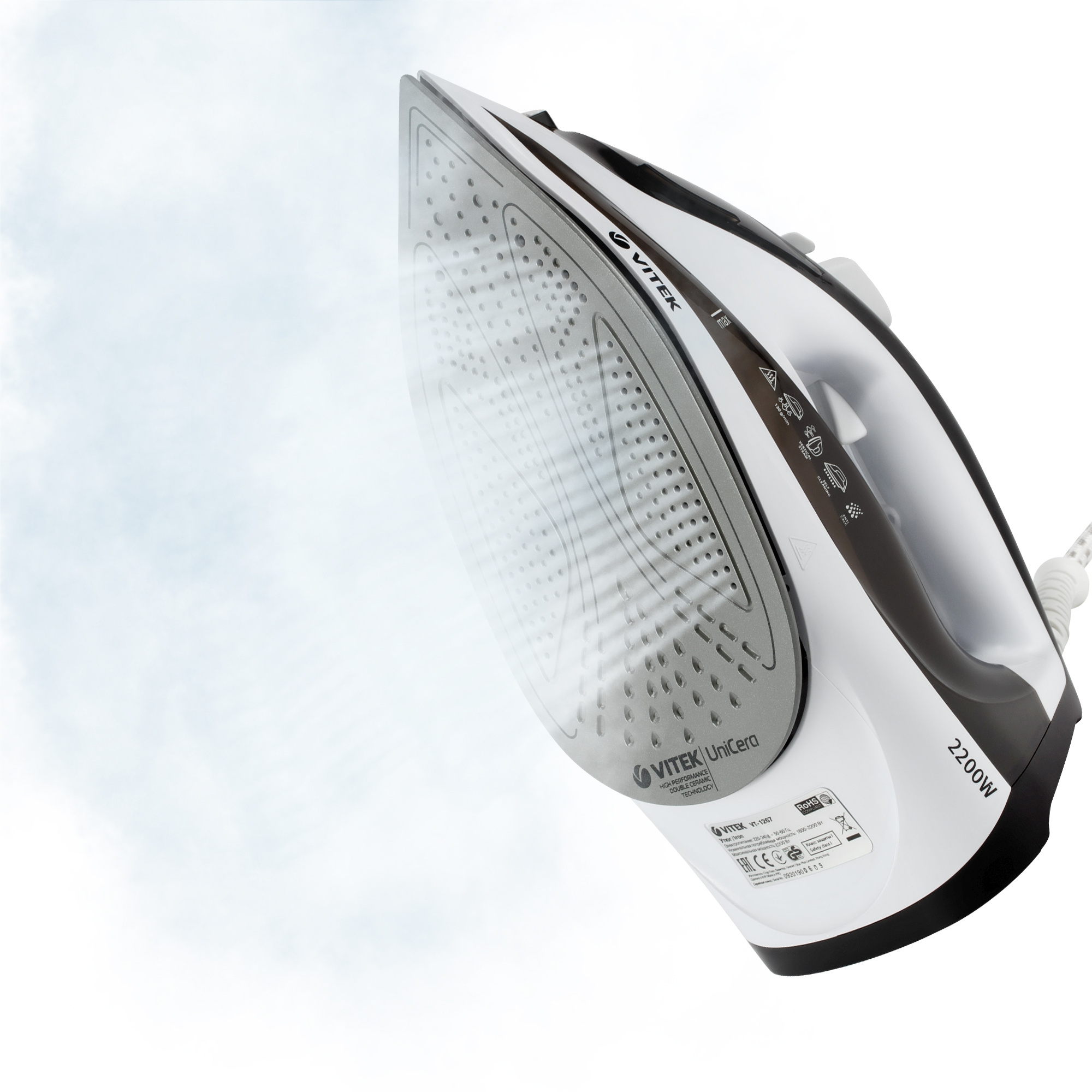 Безупречно отгладить одежду не только из тонких, но и плотных тканей поможет утюг VITEK VT-1267 с максимальной мощностью 2200 Вт. Прибор оснащен различными режимами отпаривания, в том числе вертикального (паровой удар — до 130 г/мин). Подошва утюга имеет двойное керамическое покрытие UniCera, устойчивое к царапинам, которое обеспечивает невероятно легкое скольжение по любому виду ткани. Особому комфорту в использовании прибора способствует встроенная система защиты от накипи. Объем резервуара для воды — 330 мл.