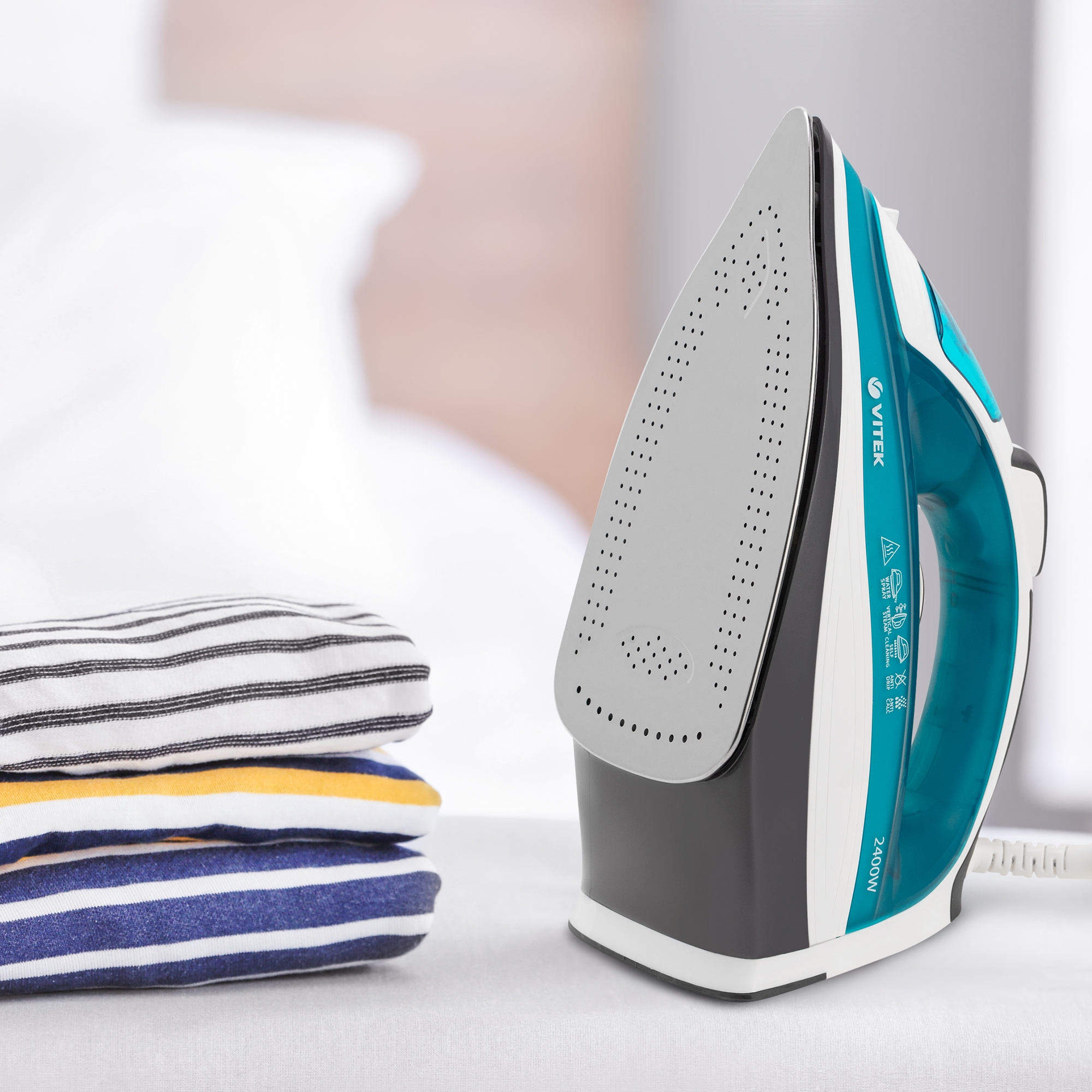 Утюг VITEK VT-1265 с прочной подошвой из нержавеющей стали и функцией защиты от накипи – это прекрасный повод, чтобы, наконец, полюбить гладить. Благодаря функции разбрызгивания, а также регулируемой постоянной подаче пара вы будете намного легче справляться даже с самыми неподатливыми тканями. А в особо сложных случаях на помощь придет единовременная усиленная подача пара. Система самоочистки резервуара и функция «Антикапля», предотвращающая вытекание воды из подошвы, избавят ваше белье от появления случайных пятен и загрязнений. Длинный сетевой шнур с шаровым креплением и функция вертикального отпаривания обеспечат максимальное удобство и необходимое пространство для маневра. А если нужно, вы всегда сможете отключить подачу пара, чтобы использовать утюг в режиме сухого глажения.