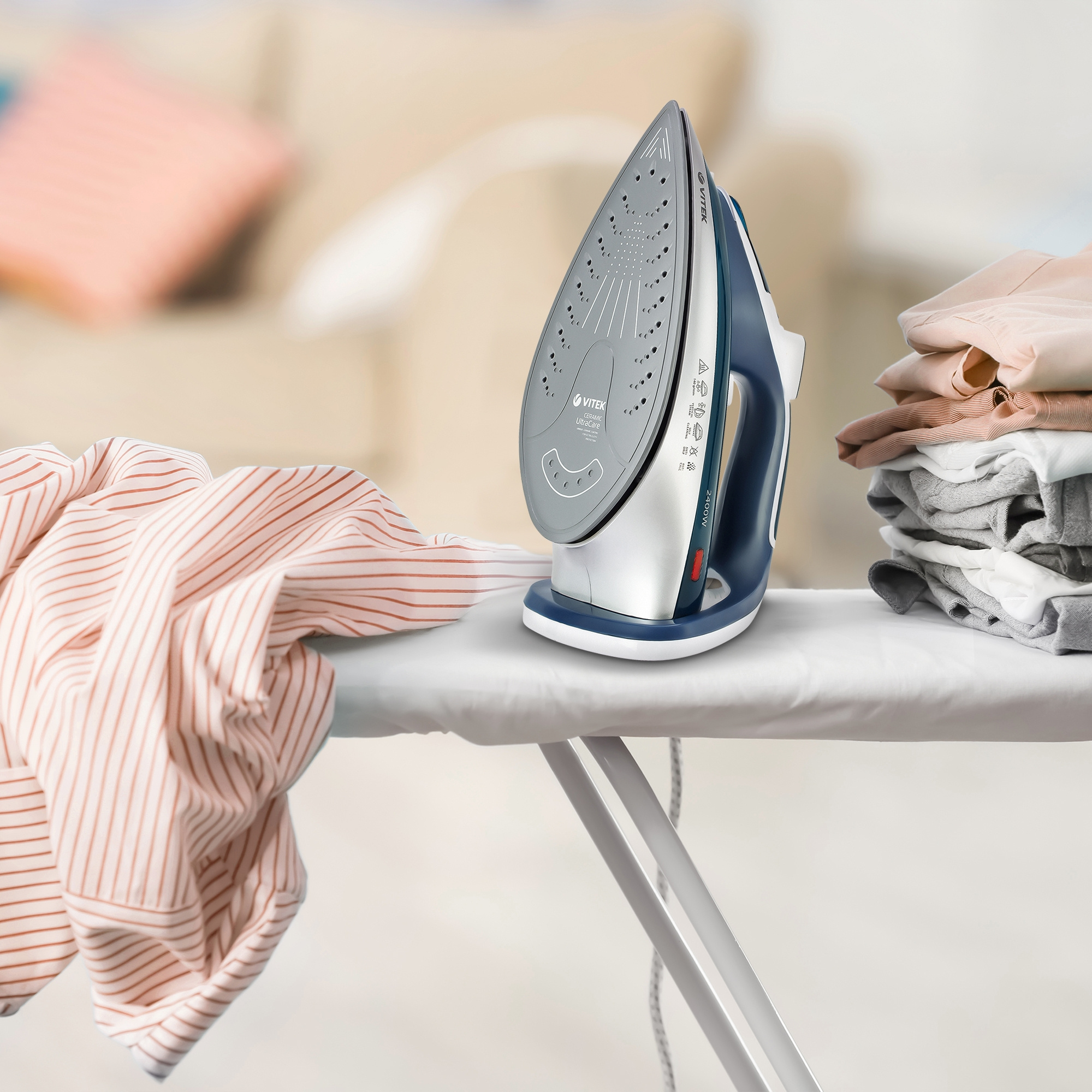 С утюгом VITEK VT-8306 вы можете разглаживать любые виды тканей или вертикально отпаривать. Настройте подходящую температуру и подачу пара и получите удовольствие от процесса глажки!