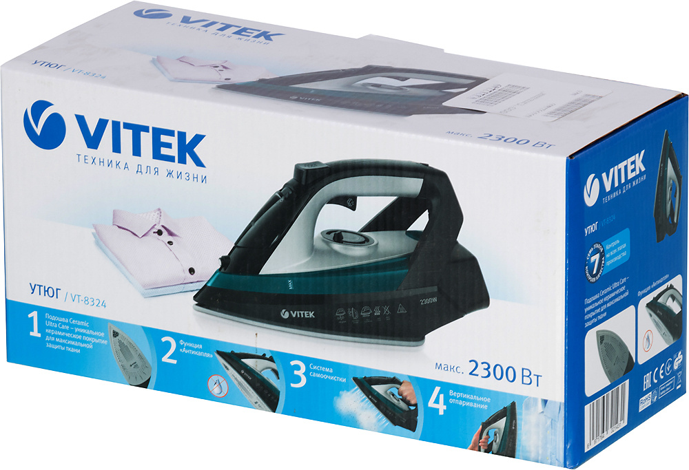Эффектный дизайн, высокая функциональность, комфортность в использовании. Все это — об утюге VITEK VT-8324, подошва которого оборудована инновационным керамическим покрытием Ceramic UltraCare, которое делает процесс глажения удивительно легким. Утюг оборудован надежной противокапельной системой.